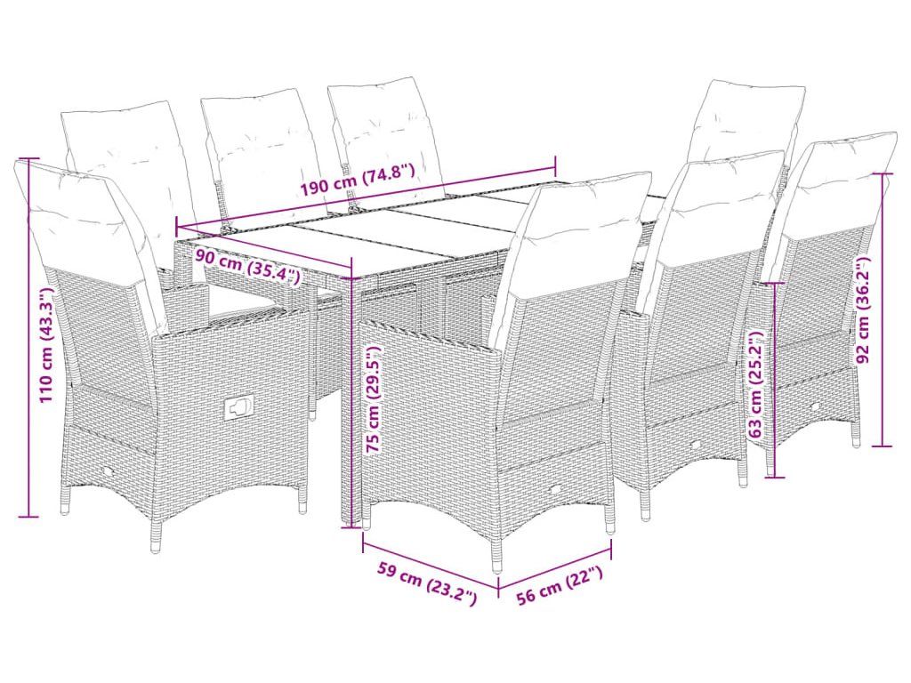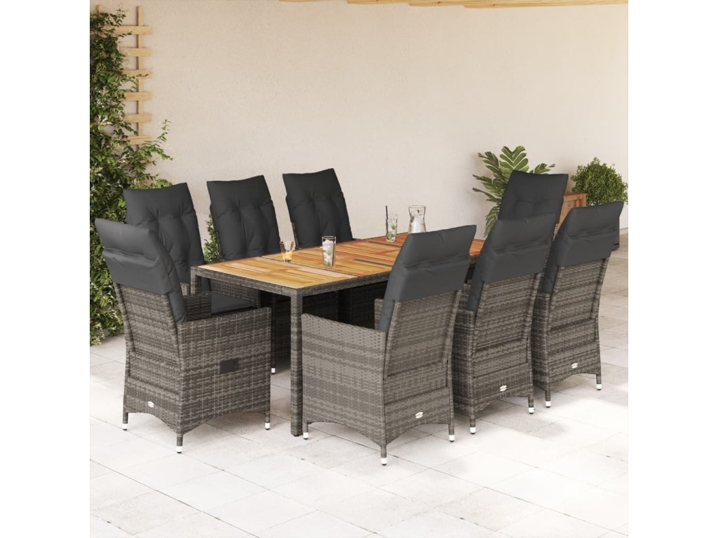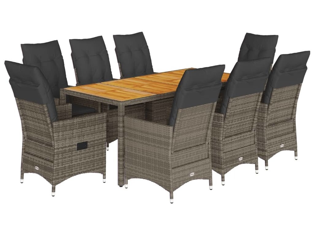 9dílný zahradní jídelní set s poduškami šedý polyratan [3276730]