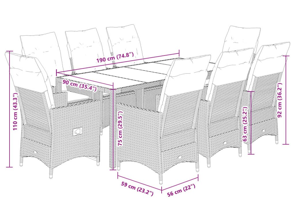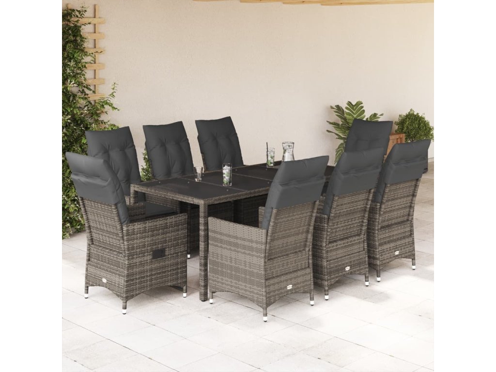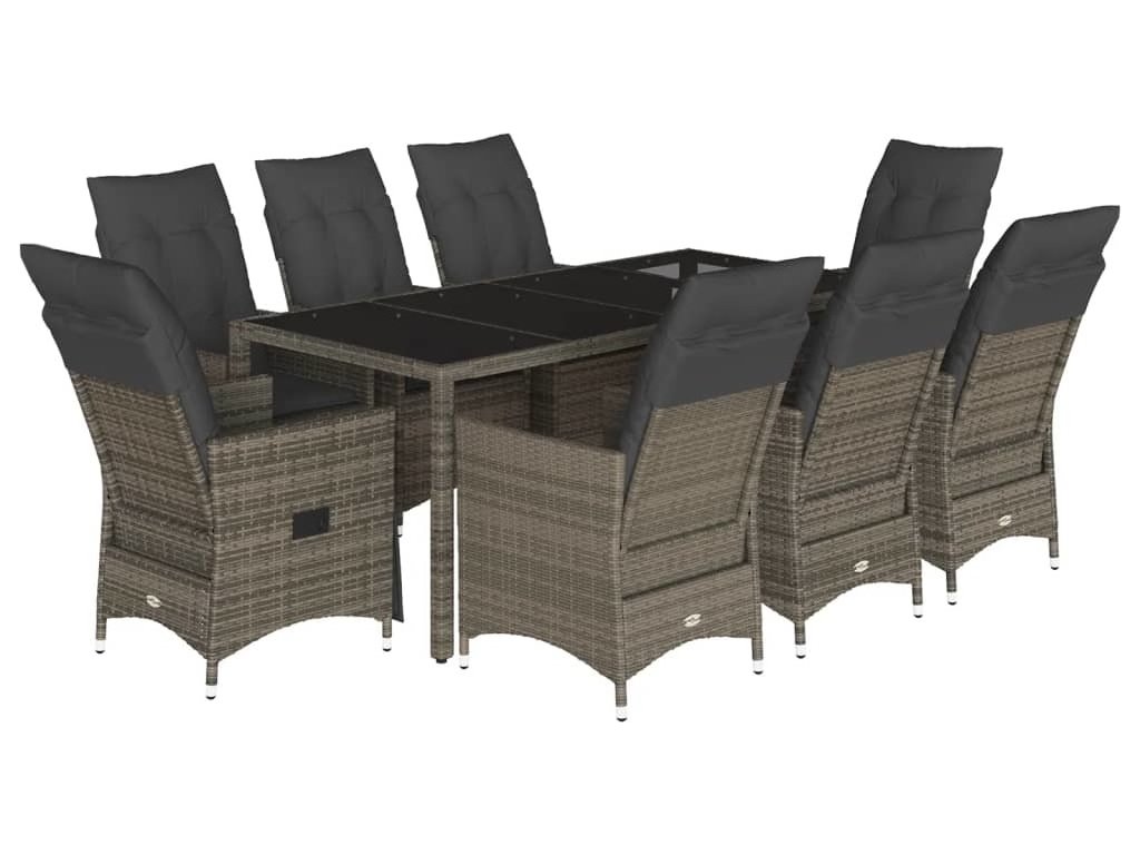 9dílný zahradní jídelní set s poduškami šedý polyratan [3276743]