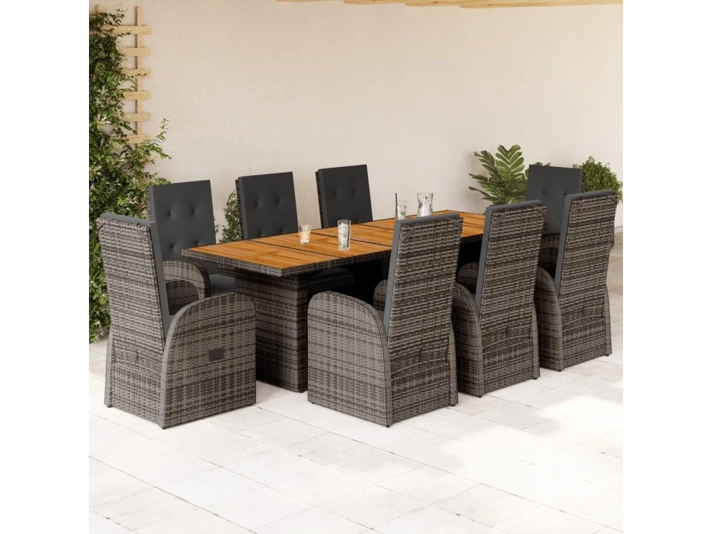 9dílný zahradní jídelní set s poduškami šedý polyratan [3277595]