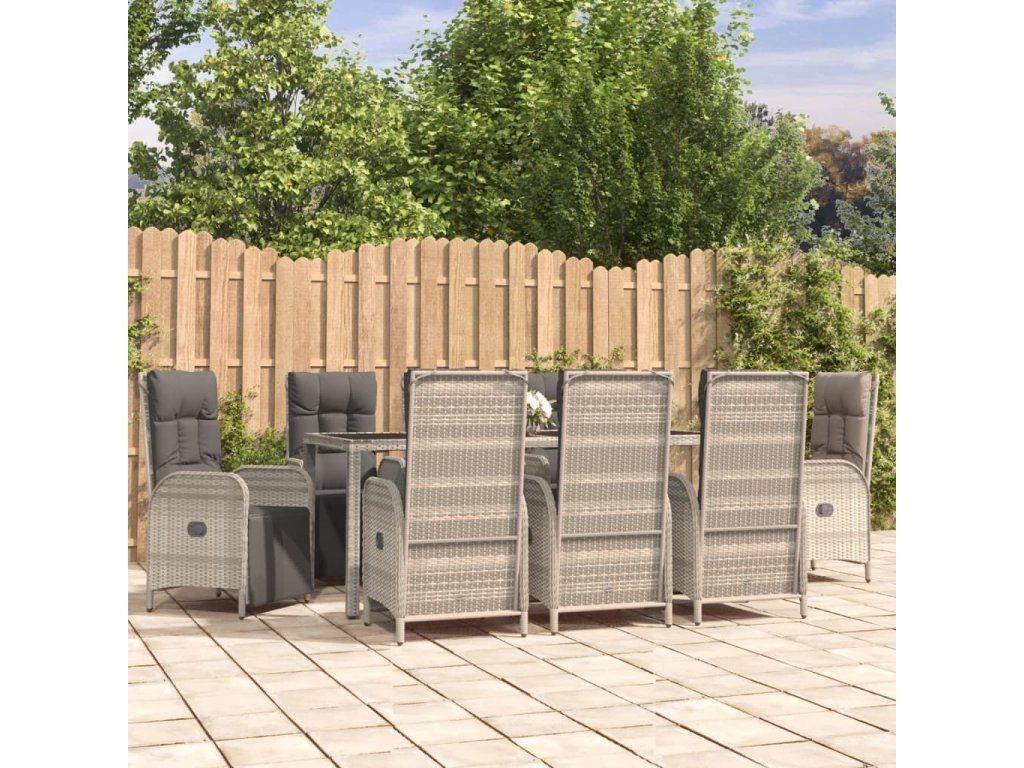 9dílný zahradní jídelní set s poduškami šedý polyratan [3185034]