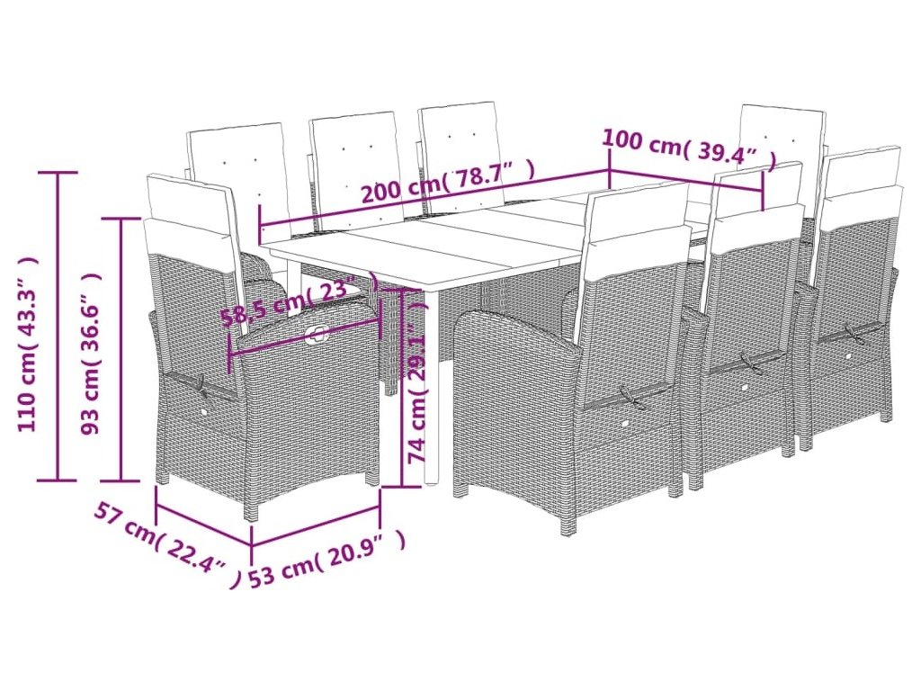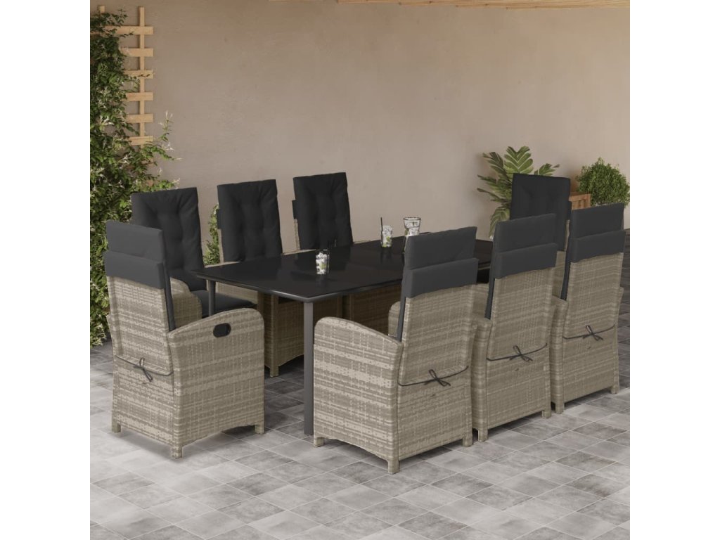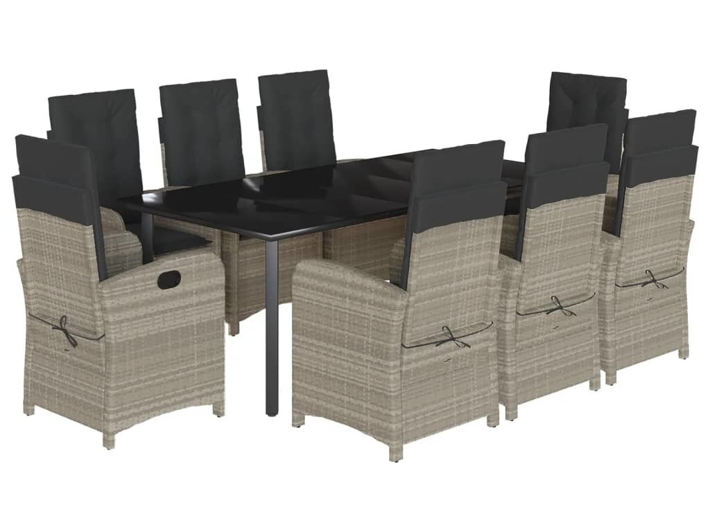 9dílný zahradní jídelní set s poduškami světle šedý polyratan [3212429]