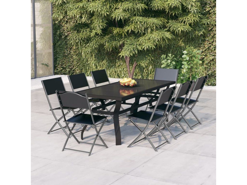 9dílný zahradní jídelní set šedočerný [3102921]