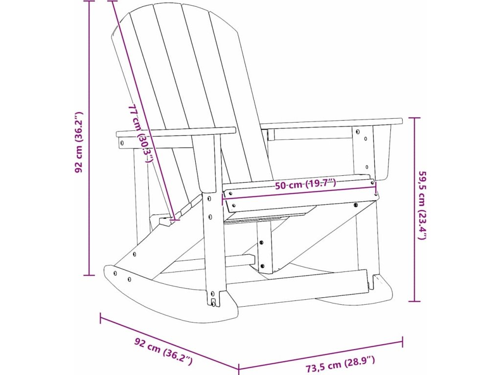 - 2 x Adirondack houpací křeslo: 73.5 x 92 x 92 cm (Š x H x V)