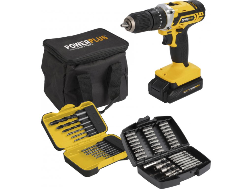 Aku vrtačka Powerplus POWX00840 usnadní práci každému kutilovi. V případě potřeby ji jednoduše proměníte v příklepový šroubovák a pokračujete v činnosti. Výkonná vrtačka vyvrtá do oceli, kamene nebo betonu díru o průměru až 10 mm a do dřeva až 20 mm. V balení navíc najdete velké množství příslušenství, se kterým vám práce půjde od ruky.