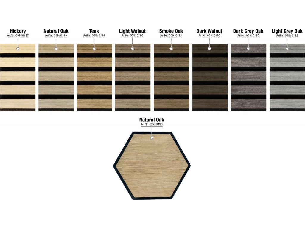 Díky kombinaci polystyrenového vlákna a MDF* materiálu má obklad G21 vynikající akustické vlastnosti. Polystyrénové vlákno je známé pro svou schopnost absorbovat zvuk a snižovat ozvěny v prostoru, zatímco MDF dodává panelu další tuhost a strukturální stabilitu. Akustický obklad G21 spojuje výhody akustické účinnosti, pevnosti a designové variability, což jej činí skvělou volbou pro různé typy prostorů a interiérů.