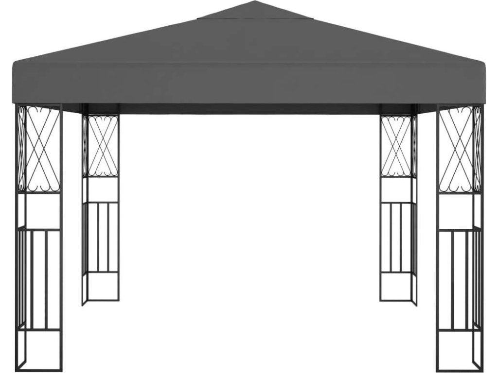 Užijte si vaše rodinné sešlosti, grilovačky, odpolední pikniky či narozeninové oslavy bez obav – tento plátěný a odvětrávaný altán vás totiž spolehlivě ochrání před sluncem i deštěm. Zahradní stan má pevnou ocelovou konstrukci s dekorativními křížovými ornamenty a polyesterovou střechu. Ta má zesílené rohy a lze ji na ocelový rám snadno připevnit.