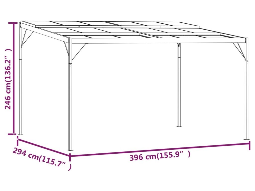Altán se střechou antracitový 4 x 3 x 2,5 m hliník a ocel [48605]