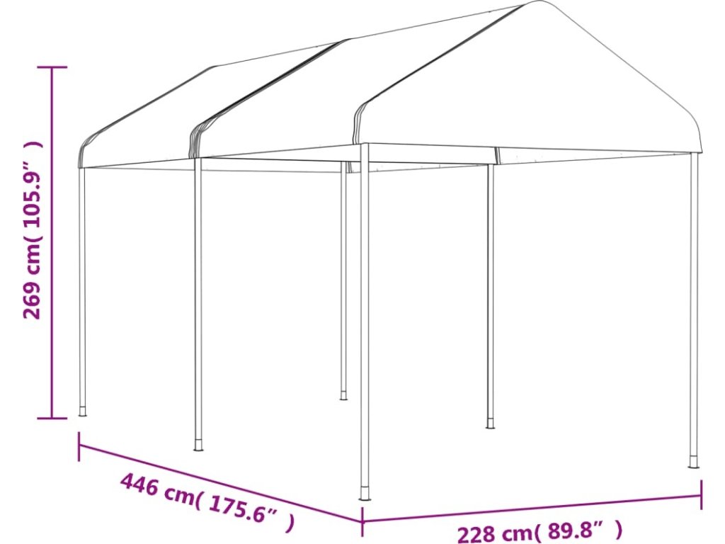 Altán se střechou bílý 4,46 x 2,28 x 2,69 m polyethylen [3155502]