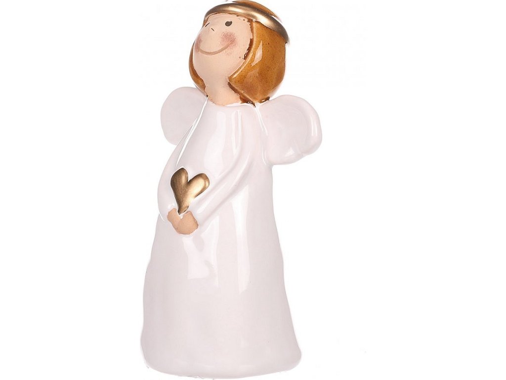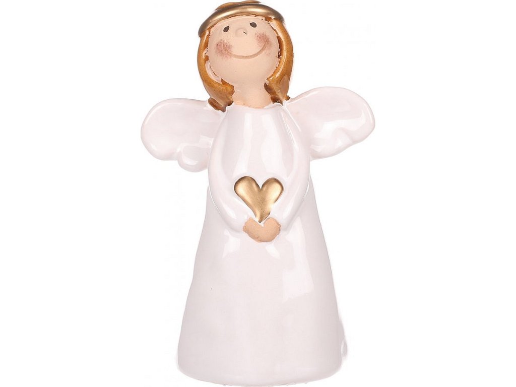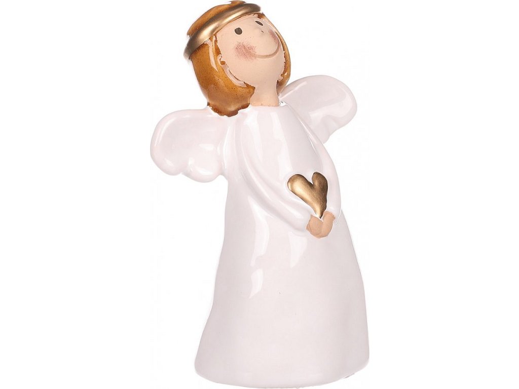 Anděl - keramická figurka, bílá se zlatým srdcem KEK9450 [9450]