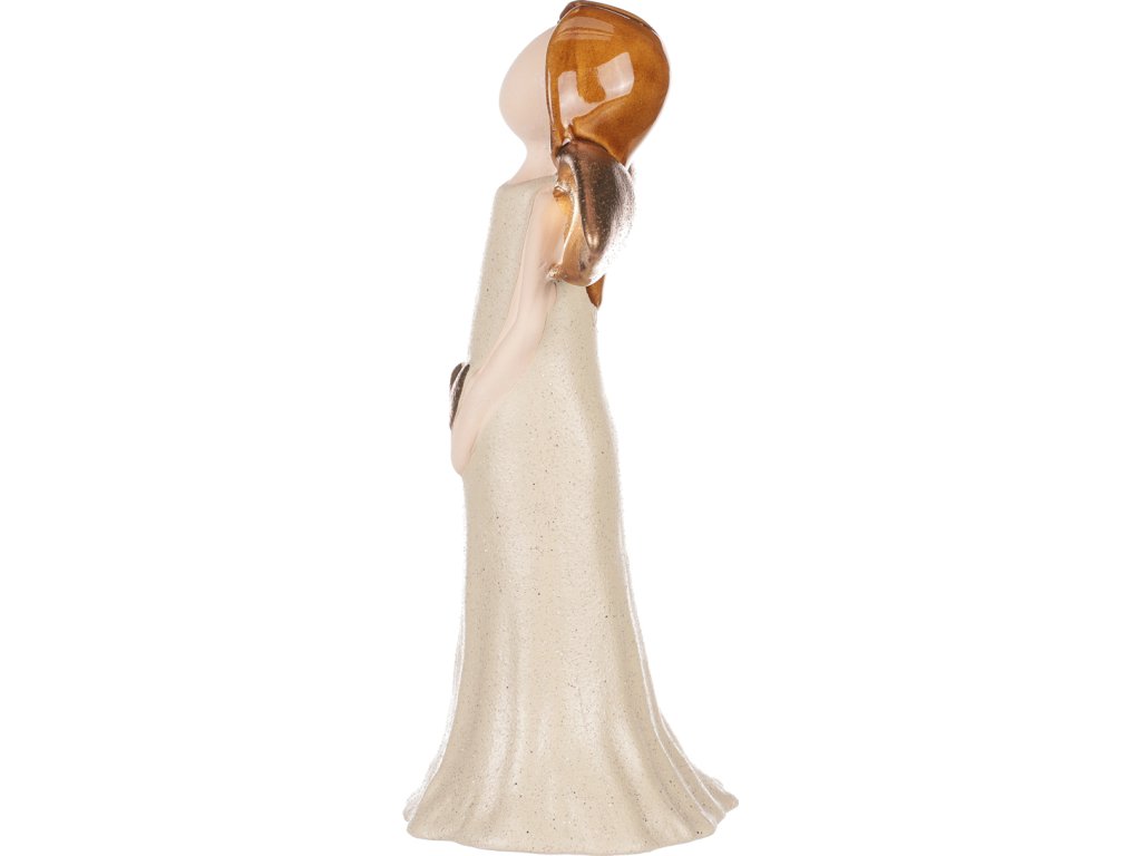 Podlehněte jemnosti a kráse této dekorační keramické sošce anděla se zlatými křídly a srdíčkem v rukou. Přidejte tím dotek s kombinací duchovnosti a elegance do vašeho prostoru a nechte jej vynikat na poličce, komodě nebo na jiném vhodném místě, kterému chcete dodat zvláštní význam. Anděl symbolizuje lásku a emocionální naplnění a jeho přítomnost vytváří atmosféru ochrany a péče, jenž nám připomíná důležitost porozumění a soucitu v našem životě. Ať už hledáte duchovní poselství, pocit klidu nebo prostě krásnou dekoraci, přidejte do svého prostoru tento výrazný symbol lásky a nechte se obklopit jeho magickým vlivem.