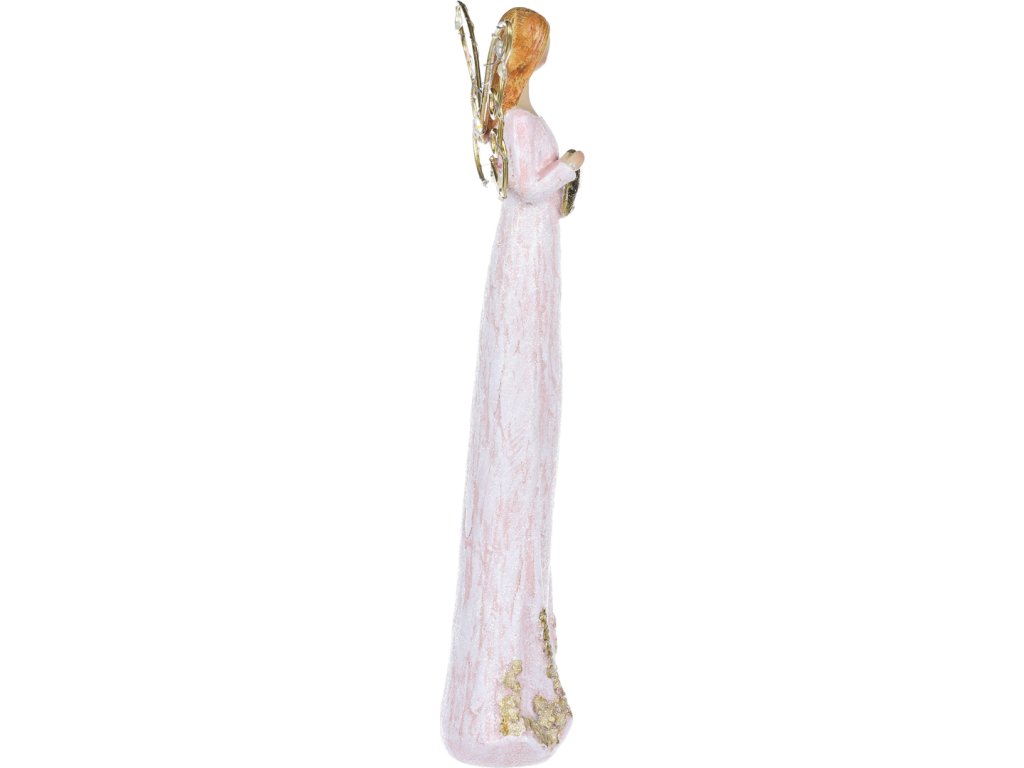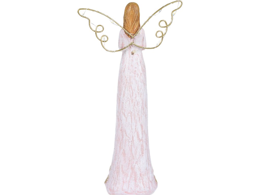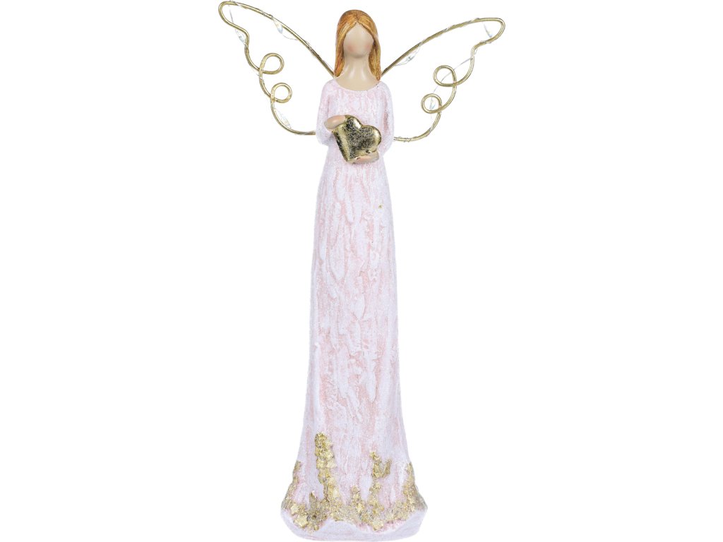 Anděl se svítícími křídly - polyresin, růžový se zlatým srdcem SM400-PINK