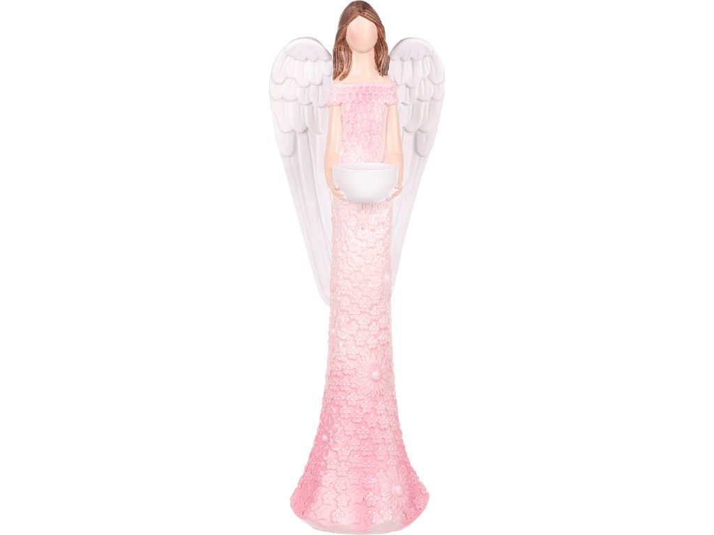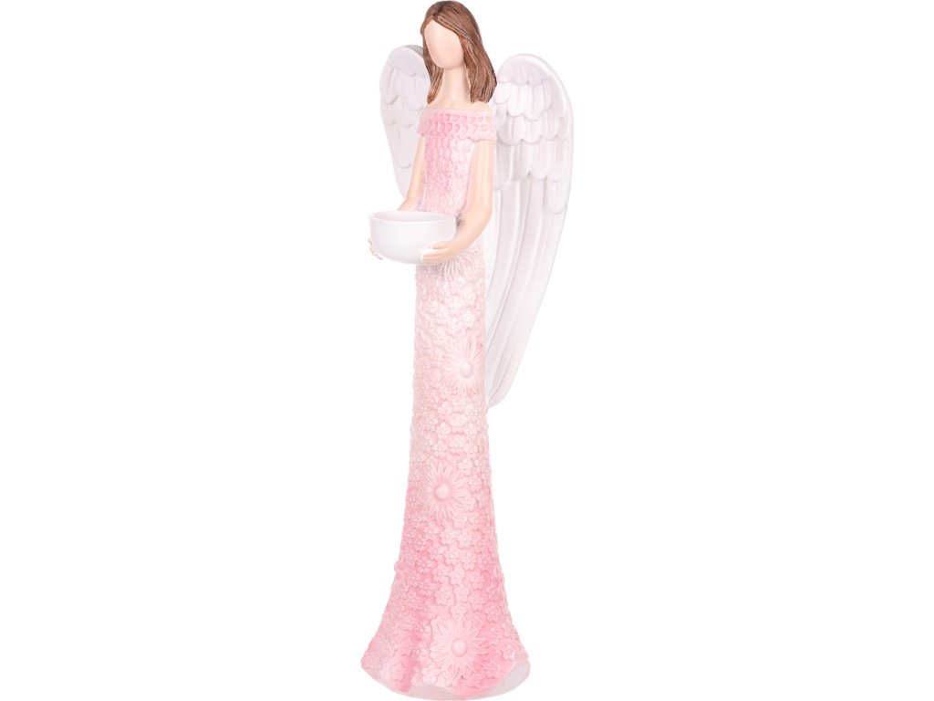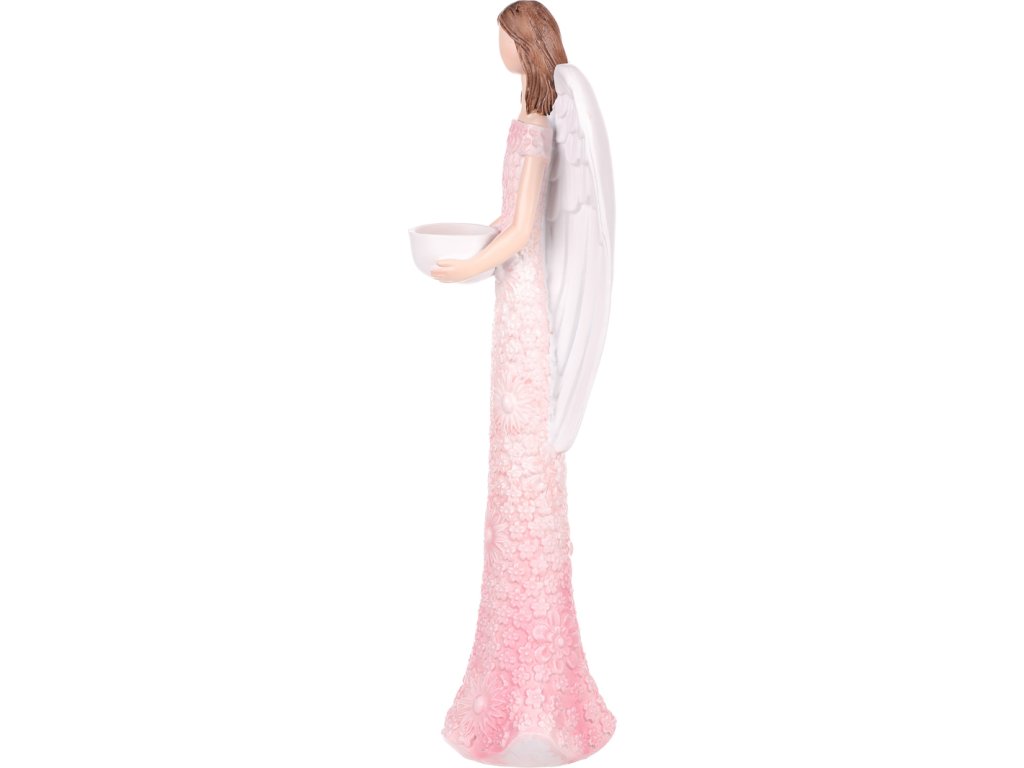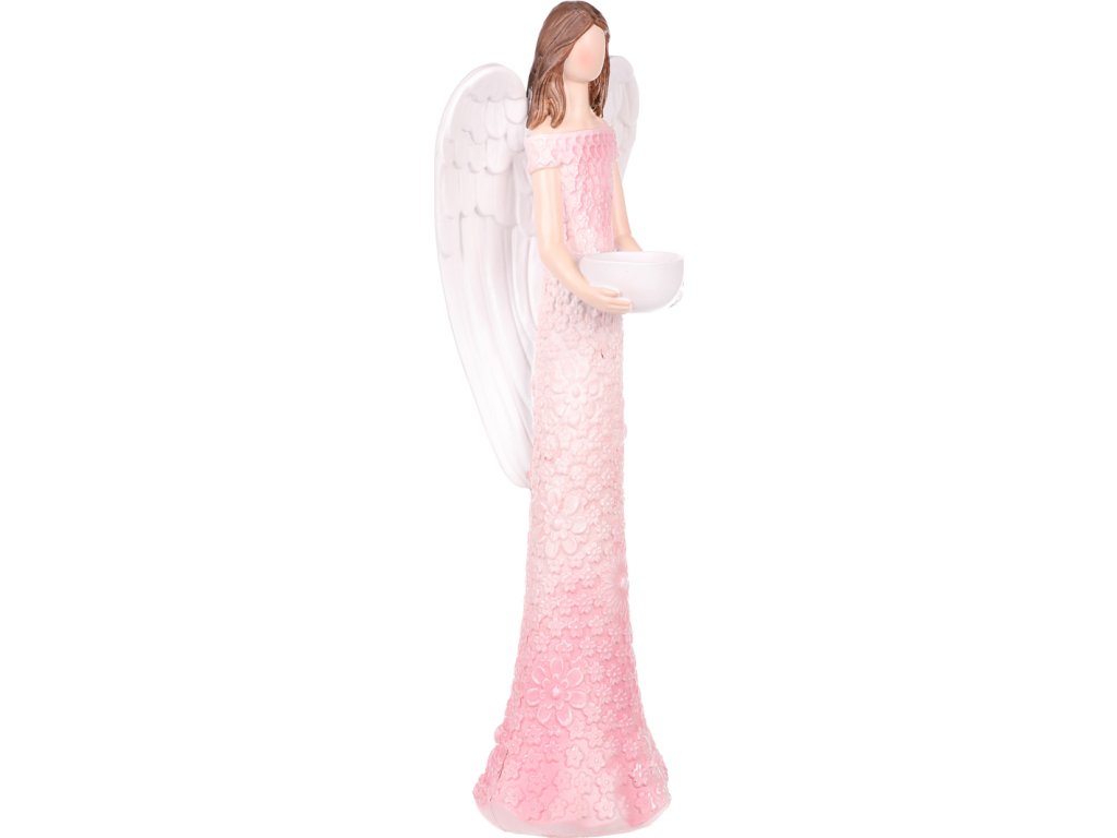 Anděl - polyresin, kalíšek na svíčku, růžový AND209-PINK