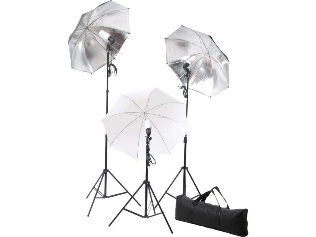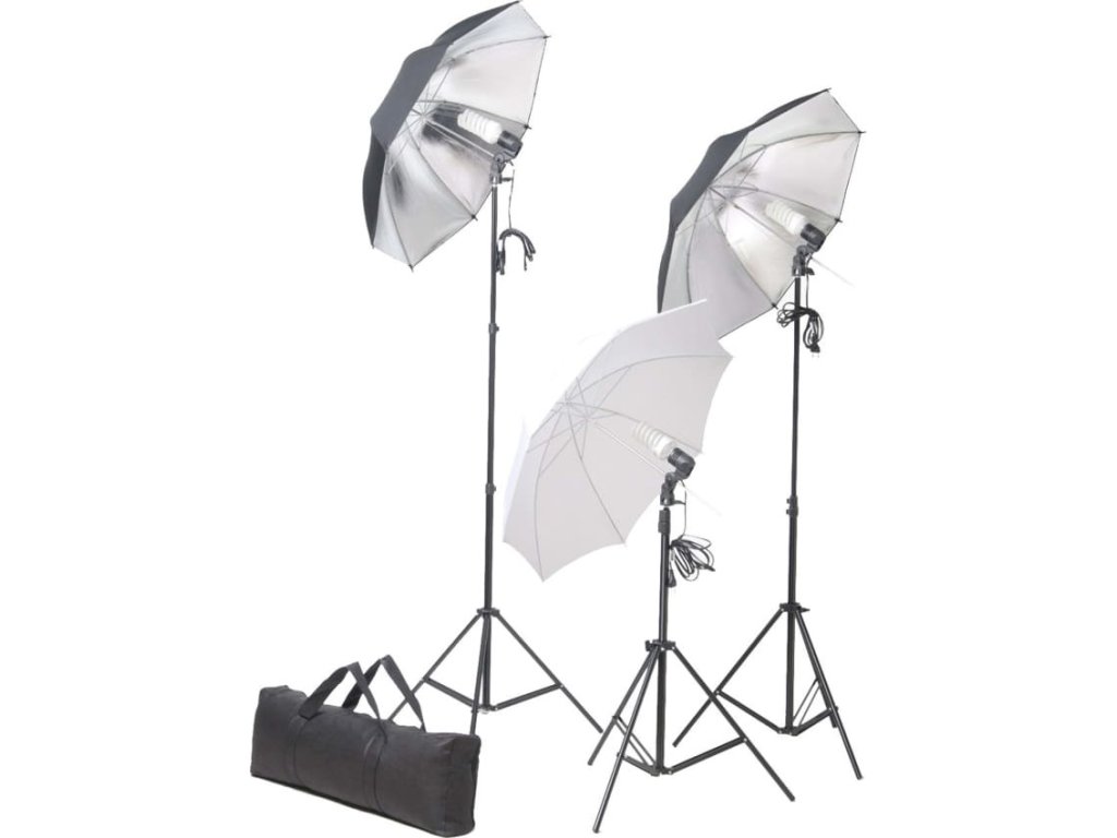 Tato sada světel se hodí pro pořizování fotografií či videí v terénu i ve studiu. Žárovky s denním světlem o síle 5 500 kelvinů jsou schopny vytvořit přírodní osvětlení. Světelný výkon těchto 3 lamp je 100 wattů a vyzařuje ze 3 žárovek, z nichž má každá výkon 24 wattů. Světla lze připevnit ke stativu, který dosahuje maximální výšky 230 cm. Tři deštníky (1x bílý, 2x stříbrný) poskytují jemné osvětlení, které vám pomůže předejít ostrým stínům. Sestavení celé sady je snadné a můžete si ji nosit všude s sebou v přiložené přenosné tašce.