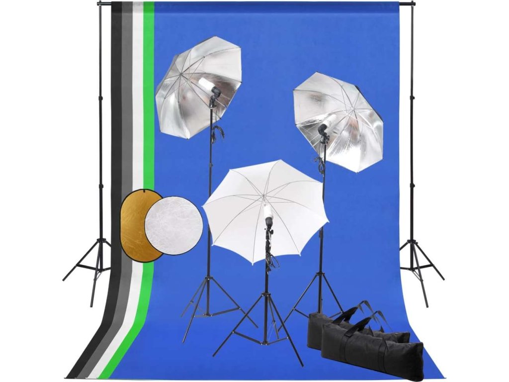 Ateliérové vybavení lampy, deštníky, pozadí a odrazná deska [3067101]