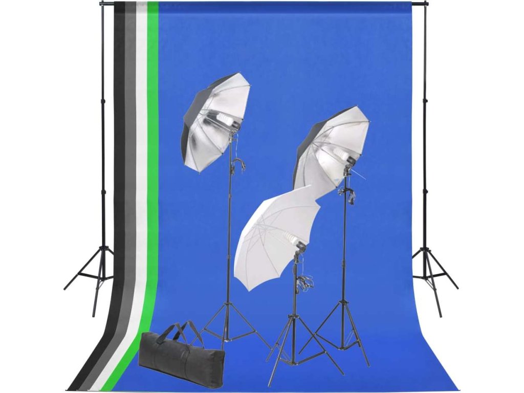 Tato sada světel se hodí pro pořizování fotografií či videí v terénu i ve studiu. Žárovky s denním světlem o síle 5 500 kelvinů jsou schopny vytvořit přírodní osvětlení. Světelný výkon těchto 3 lamp je 100 wattů a vyzařuje ze 3 žárovek, z nichž má každá výkon 24 wattů. Světla lze připevnit ke stativu, který dosahuje maximální výšky 230 cm. Tři deštníky (1x bílý, 2x stříbrný) poskytují jemné osvětlení, které vám pomůže předejít ostrým stínům. Sestavení celé sady je snadné a můžete si ji nosit všude s sebou v přiložené přenosné tašce.