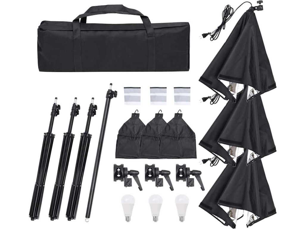 3 x fotosvětlo3 x softbox3 x stativ2 x stativ2 x díl příčné tyče2 x taška na přenášení Tento spotřebič není určen k používání osobami (včetně dětí) se sníženými fyzickými, smyslovými nebo duševními schopnostmi nebo s nedostatkem zušeností a znalostí, pokud jim osoba odpovědná za jejich bezpečnost neposkytla dohled nebo je nepoučila o používání spotřebiče. Tento výrobek není hračka. Děti si se spotřebičem nesmí hrát.