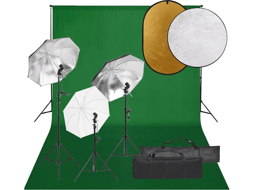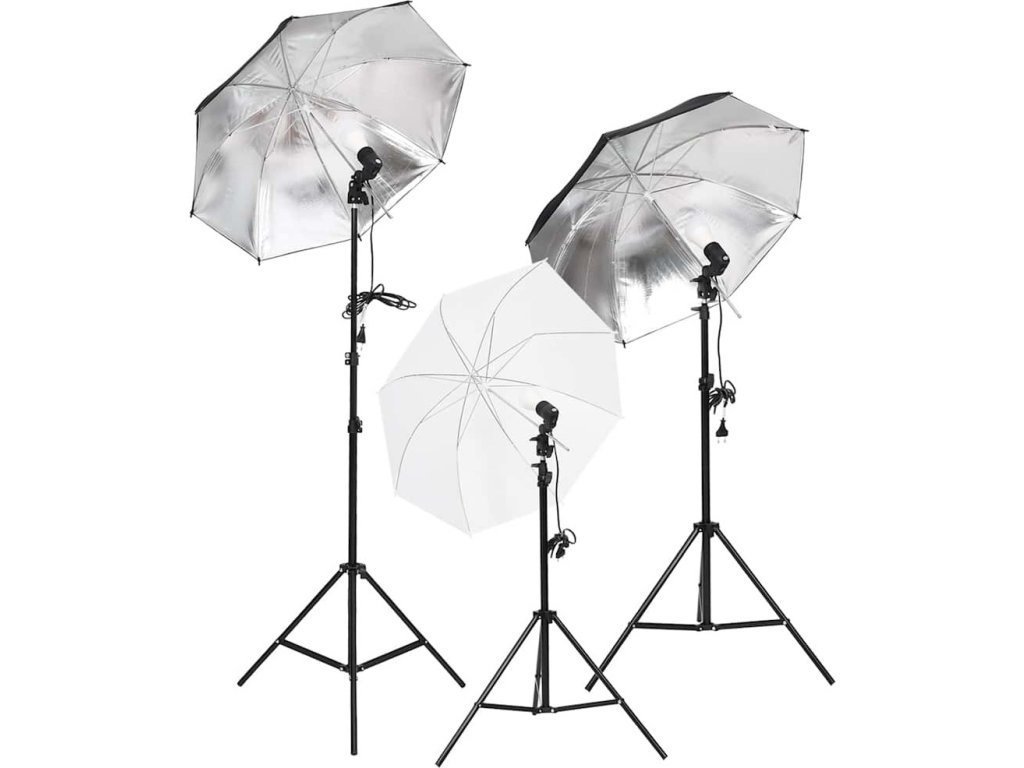 3 x stativ3x deštník (1x bílý, 2x stříbrný)3 x denní světlo2 x stativ2 x díl příčné tyče1 x pozadí1x odrazná deska 5 v 11 x odrazná deska 2 v 12 x taška na přenášení Tento přístroj není určen k používání osobami (včetně dětí) se sníženými fyzickými, smyslovými nebo duševními schopnostmi nebo s nedostatkem zkušeností a znalostí, pokud jim osoba odpovědná za jejich bezpečnost neposkytla dohled nebo pokyny týkající se používání přístroje. Tento výrobek není hračka. Nedovolte dětem hrát si se spotřebičem.