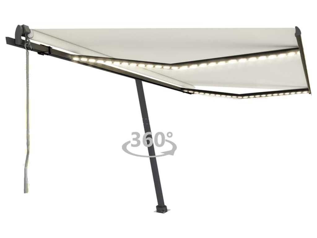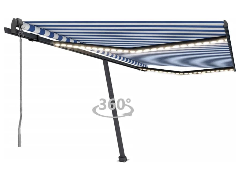 Zahradní markýza má práškově lakovaný hliníkový rám, který nerezaví, je lehký a přitom tvoří velice pevnou konstrukci. Stříška je vyrobená z polyesteru s vysokou hustotou a s PU povlakem, skvěle proto odolává vodě i UV záření. Úhel a výšku samostatně stojící markýzy si navíc můžete nastavit podle vašich momentálních potřeb. Robustní stojan lze otáčet o 360 stupňů, což vám dává maximální možnost přizpůsobení. Automatickou stříšku snadno roztáhnete a zatáhnete pomocí dálkového ovladače. K hladkému ovládání vám poslouží také dlouhá ruční klika. Markýza je rovněž opatřená senzorem větru, který ji za větrných dnů automaticky zavře. LED světla vám zase v noci poskytnou energeticky úsporné osvětlení.