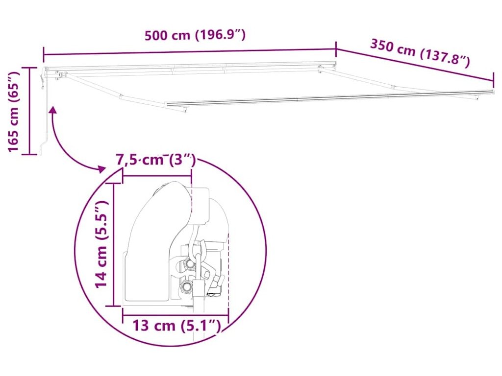 - Složení materiálu: Vyrobená z odolné tkaniny a hliníku, tahle markýza je spolehlivá a stabilní. Tkanina odolává UV záření, vodě a blednutí, což ji dělá ideální pro dlouhodobé venkovní užívání. Hliníkový rám s tkaninou zajišťuje, že markýza vydrží i v extrémních podmínkách.