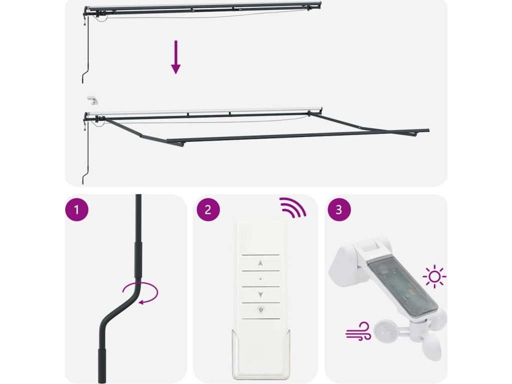 - Součásti: Balení obsahuje odolnou tkaninu markýzy, robustní rám pro stabilitu a dálkové ovládání pro pohodlné ovládání. Všechny komponenty jsou navrženy tak, aby spolu dobře spolu pracovaly a poskytovaly bezproblémový zážitek od instalace po každodenní využívání.
