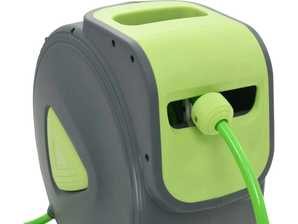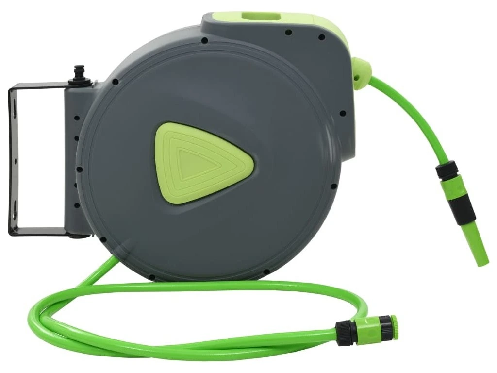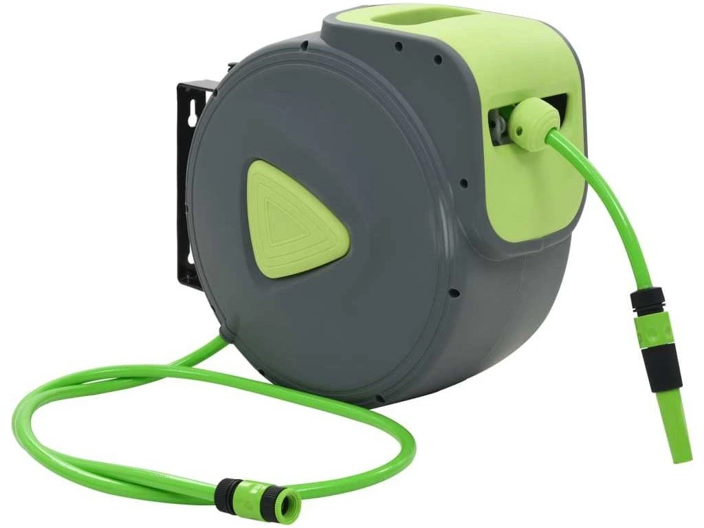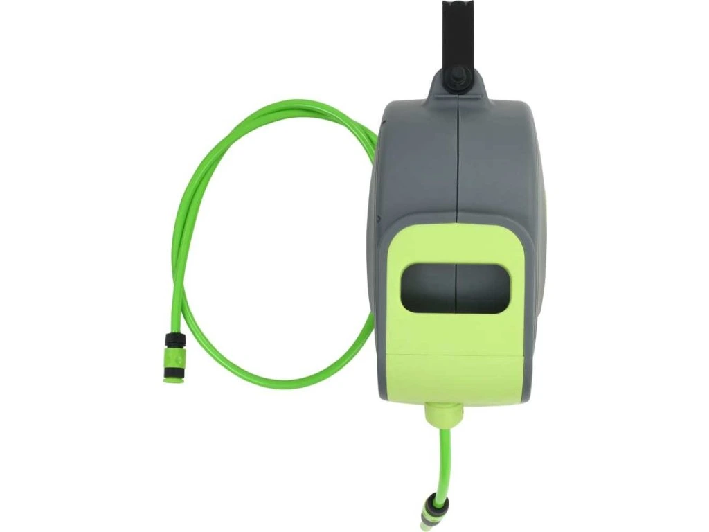 Tento vratný naviják na zahradní hadici s rozprašovačem a přípojkou můžete připevnit na stěnu a používat ho k zalévání zahradních záhonů, zavlažování trávníků, umývání aut a k dalším venkovním pracím, k nimž je zapotřebí kvalitní proud vody.