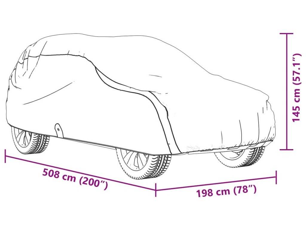 - Větruodolná konstrukce: Pružné okraje krytu zajišťují, že kryt dobře přiléhá k vašemu vozu, a průchodky uprostřed zajišťují větší bezpečnost při větrném počasí, pokud jej použijete s upínacím popruhem nebo kabelovým zámkem (není součástí dodávky).