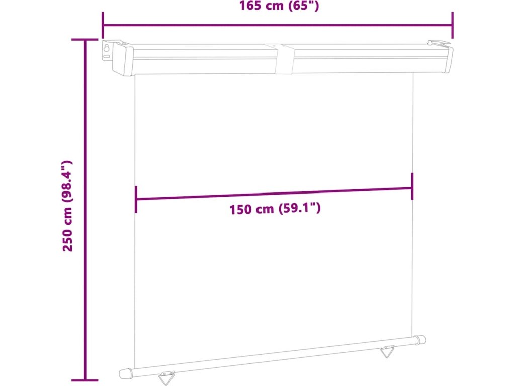 Zástěna je vyrobená z polyesteru, který je odolný jak vůči UV záření, tak proti roztržení. Hliníková rolna zajišťuje hladké vysouvání. Má samosvornou funkci, takže ji můžete zastavit na jakémkoli místě. Délku lze nastavit až do 250 cm. Boční markýza se dá automaticky stáhnout zpět do ocelové kazety pouhým zatažením za spodní trojúhelníkové kroužky. Navíc umožňuje flexibilní upevnění buď na stěnu, nebo na strop podle konkrétních potřeb.