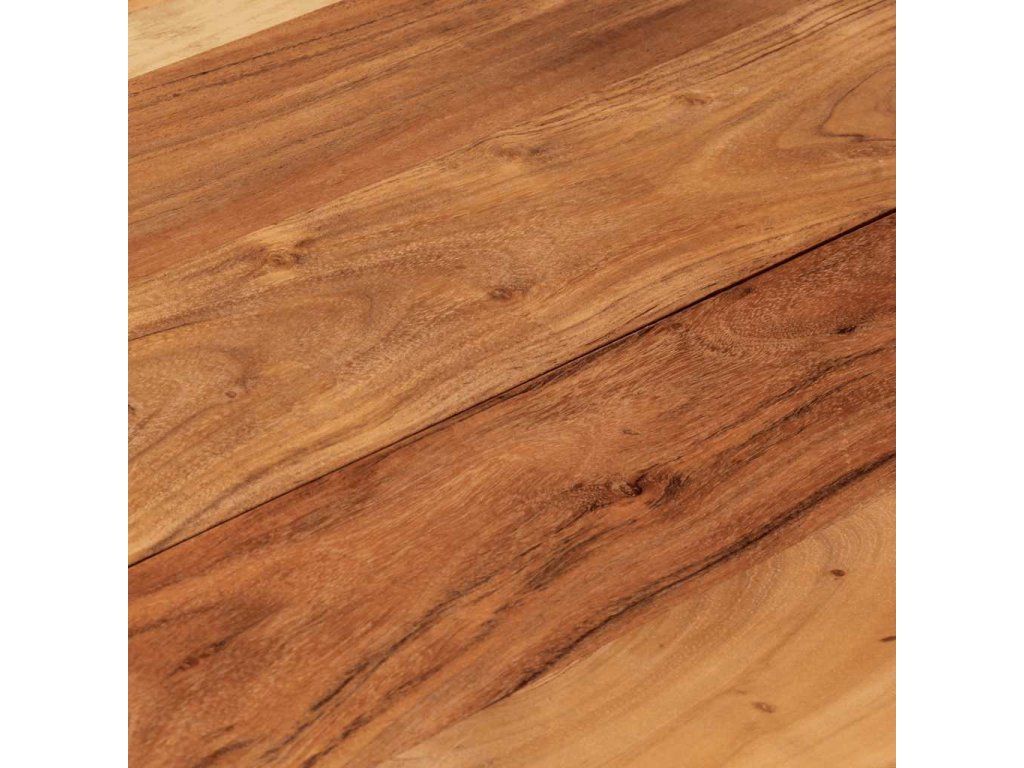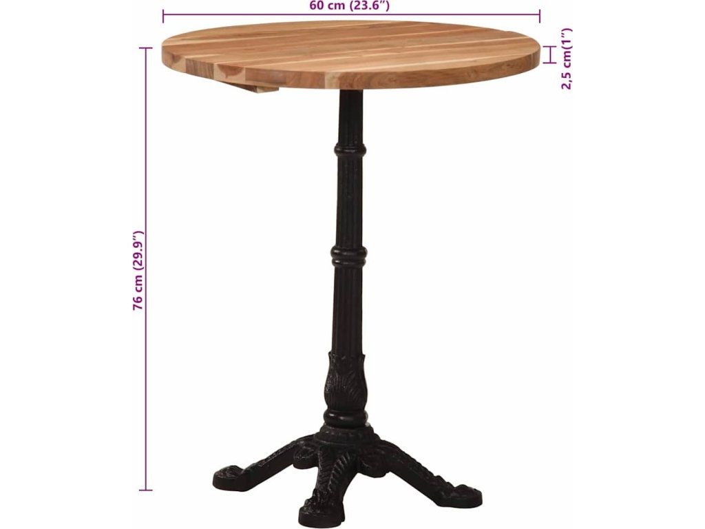 Stolní deska je vyrobená z masivního akáciového dřeva, a proto je pevná a stabilní. Základna z litiny zajišťuje výtečnou rovnováhu a pevnost. Tento jídelní stůl vám rovněž poslouží k odkládání nápojů či jiných věcí, které chcete mít vždy po ruce.