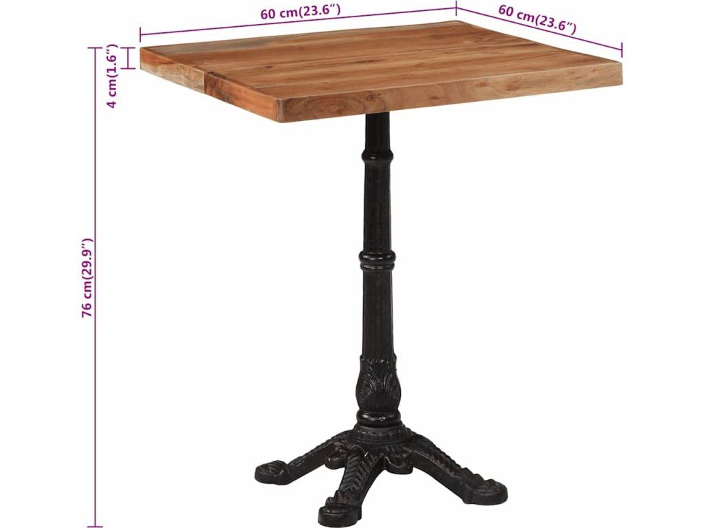 Stolní deska je vyrobená z masivního akáciového dřeva, a proto je pevná a stabilní. Základna z litiny zajišťuje výtečnou rovnováhu a pevnost. Tento jídelní stůl vám rovněž poslouží k odkládání nápojů či jiných věcí, které chcete mít vždy po ruce.