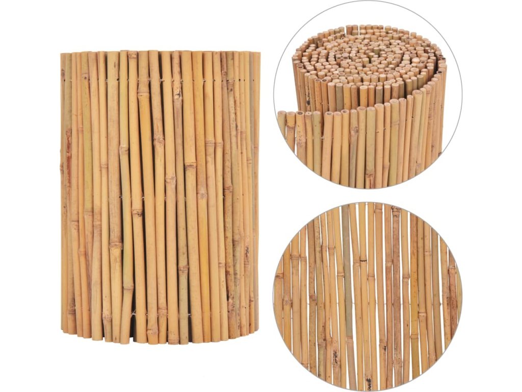 Náš zahradní plot je vyroben ze stonků bambusu. Můžete ho využít na oddělení určité části vaší zahrady nebo na vymezení cestičky či příjezdové cesty. Jeho přirozený vzhled se bude hodit do každé zahrady; sami uvidíte, že jí propůjčí exotický půvab. Plot stačí přichytit svorkou či přivázat tak, aby se neskácel. Práce s ním je proto velice jednoduchá. Můžete jej snadno použit k ohraničení různě velikých částí zahrady.