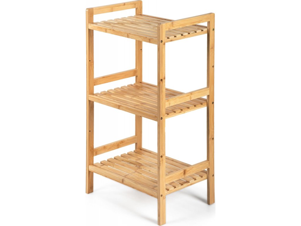 Bambusový regál se třemi policemi dodává interiéru příjemný přírodní dojem, pocit lehkosti a přirozenosti, zatímco jeho pevnost a dlouhá životnost zajišťují stabilitu a trvanlivost.