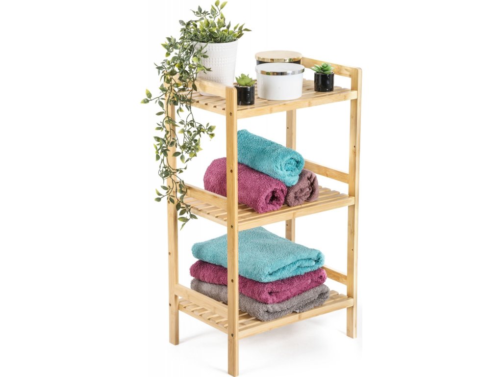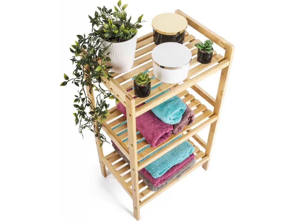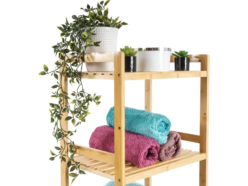 Bambus je překvapivě lehký, takže s celým stojanem s policemi můžete snadno manipulovat. Zároveň je ale dostatečně pevný, takže unese i větší zátěž. Jednou z výborných vlastností bambusového dřeva je navíc jeho velká odolnost vůči vlhkosti a přirozená odolnost vůči bakteriím a plísním, takže se nemusíte obávat jeho umístění v koupelně nebo prádelně.