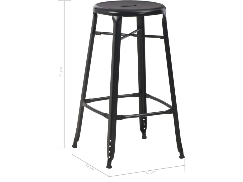Barové židle jsou zhotoveny z oceli ošetřené práškováním. Jejich ocelová konstrukce je velmi pevná a zaručuje židlím dlouhou životnost. Stoličky snadno očistíte vlhkým hadříkem. Zesílené nohy stoličkám zaručují stabilitu.