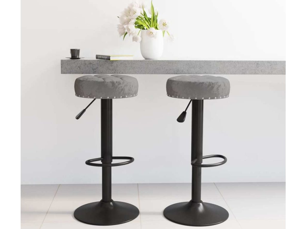 Židle jsou čalouněné měkkým sametem, který je příjemný na dotek a nabízí optimální komfort. Podstava z práškově lakované oceli zaručuje mimořádnou odolnost, zatímco vestavěná opěrka na nohy vám zase zajistí pohodlnější posezení. Výšku otočných barových židlí navíc snadno upravíte pomocí mechanismu s plynovým pístem. Barové židličky představují dokonalý doplněk do každého funkčního baru či jídelny.