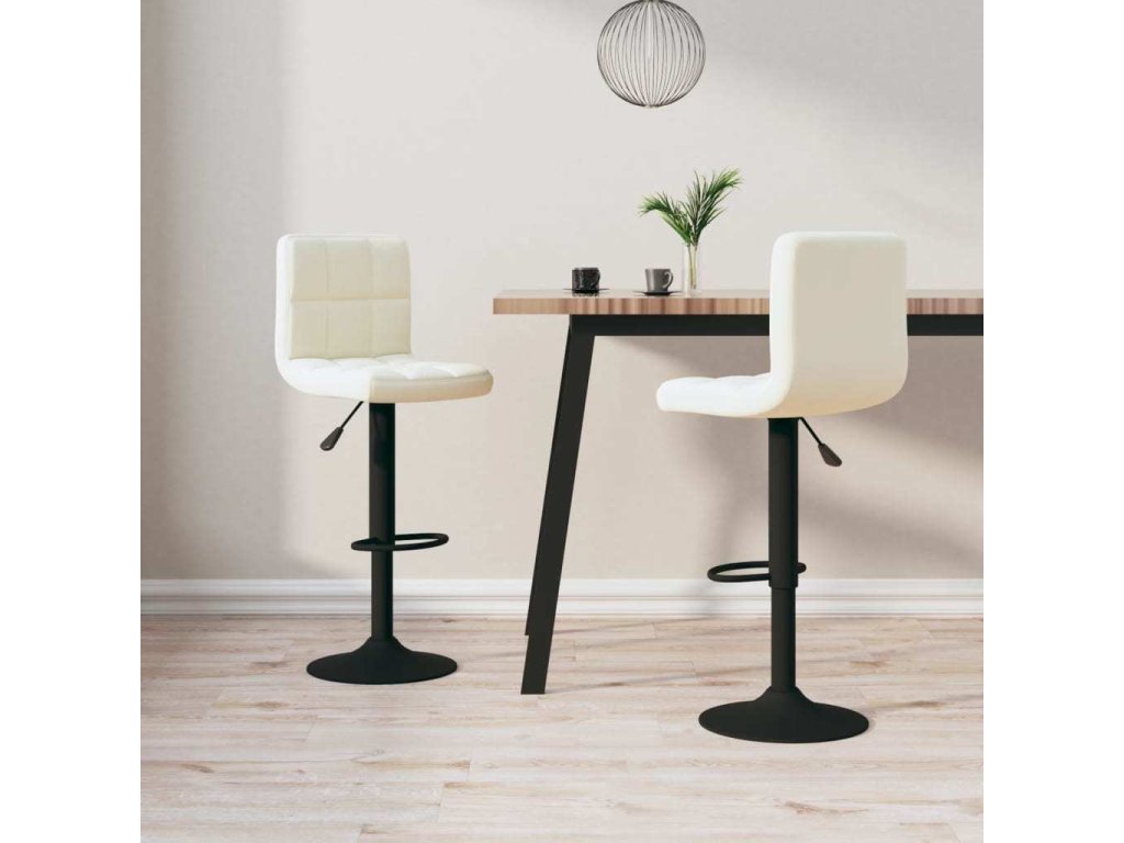 Židle jsou čalouněné měkkým sametem, který je příjemný na dotek a nabízí optimální komfort. Podstava z práškově lakované oceli zaručuje mimořádnou odolnost, zatímco vestavěná opěrka na nohy vám zase zajistí pohodlnější posezení. Výšku otočných barových židlí snadno upravíte pomocí mechanismu s plynovým pístem. Barové židličky představují dokonalý doplněk do každého funkčního baru či jídelny. Židle se navíc otáčí o 360 stupňů, což jim dodává skvělou flexibilitu.