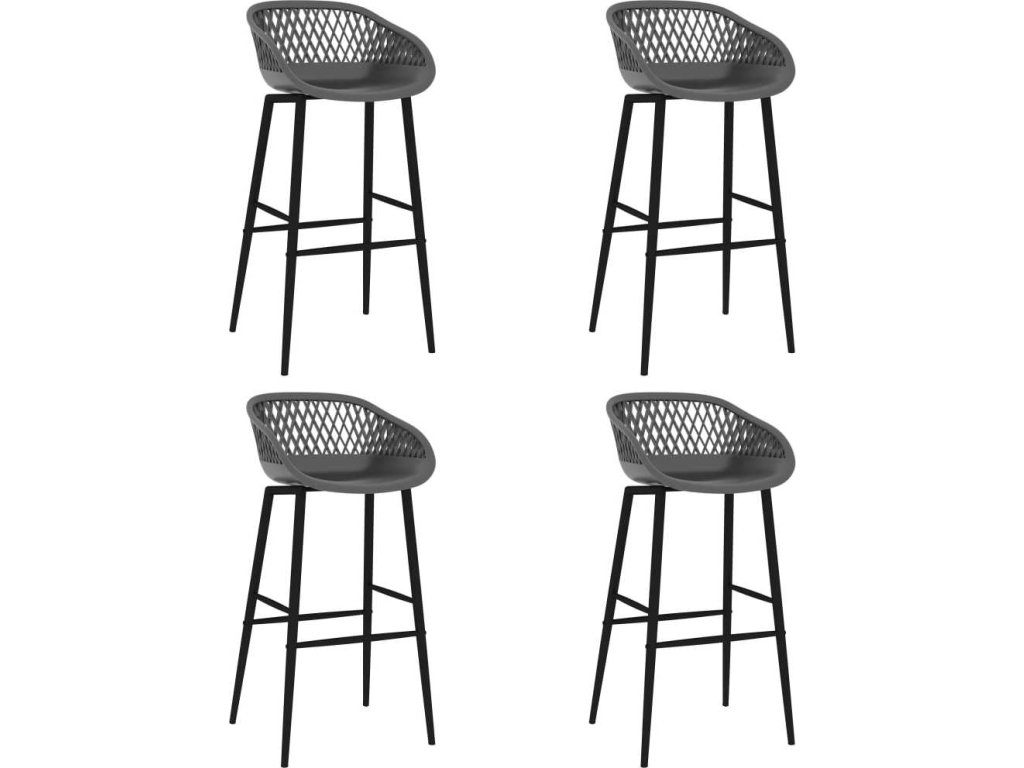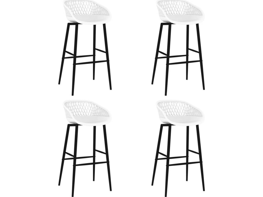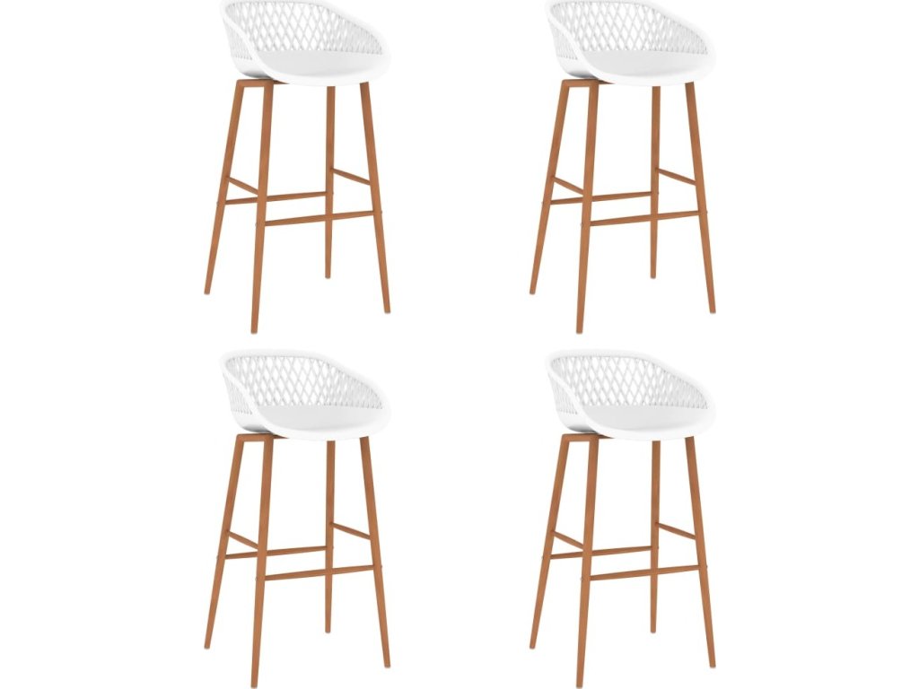 Barové židle mají ergonomicky tvarované sedadlo s integrovaným nízkým opěradlem a vyplétaným vzhledem. Jsou vyrobené z robustního PP materiálu a stojí na pevných práškově lakovaných kovových nohách, takže jsou robustní a odolné.