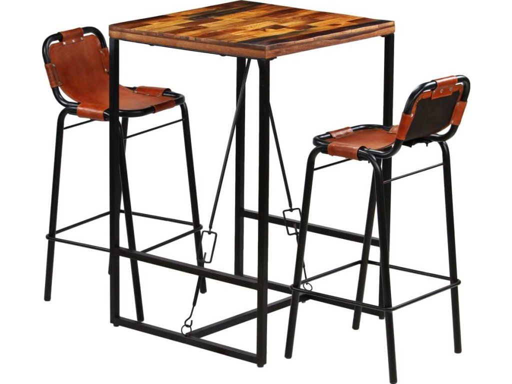 Barový set 3 kusy masivní recyklované dřevo a pravá kozí kůže [246286]