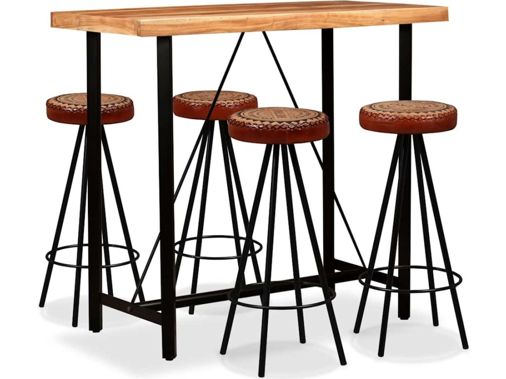Barový set 5 kusů masivní akáciové dřevo, pravá kůže, plátno [275132]