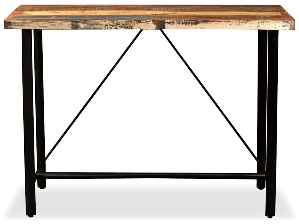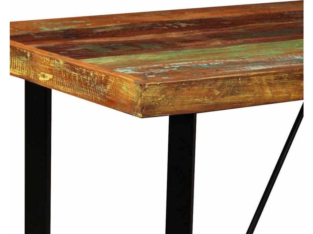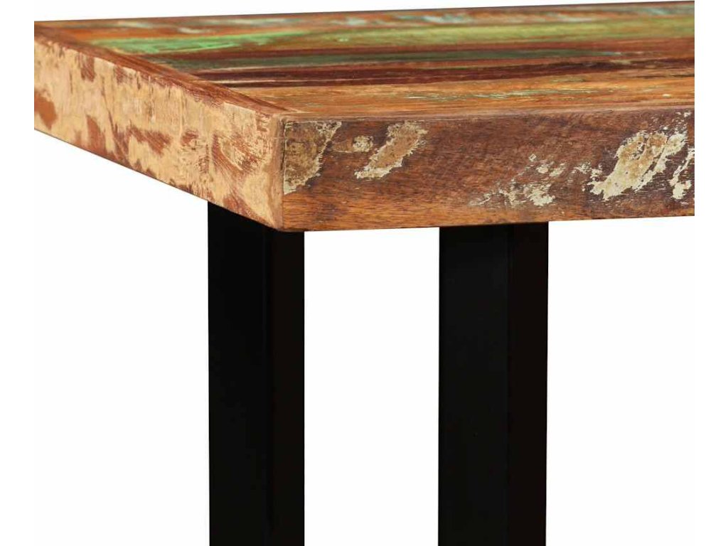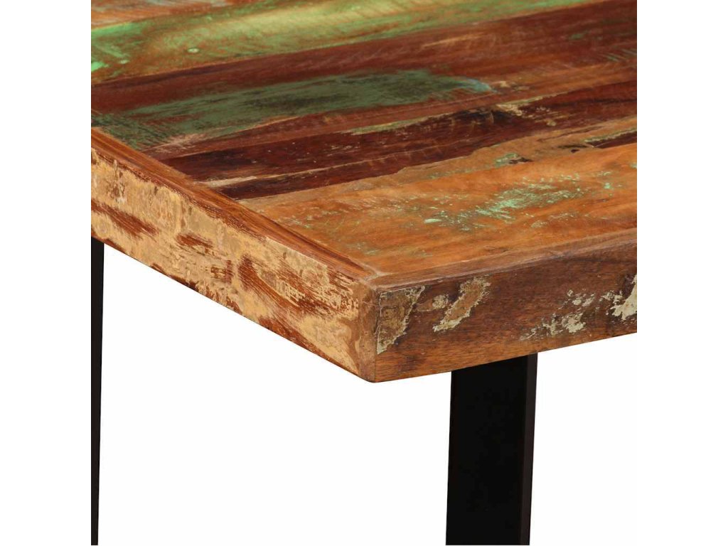 Barový stůl je vyrobený z masivního recyklovaného dřeva, takže má vlastnosti různých dřevin, jako jsou teak, mangovníkové dřevo, akácie atd. Recyklované dřevo je pevné, stabilní, odolné a také krásné. Známky opotřebení a řemeslného zpracování dávají každému kusu nábytku jedinečný charakter. Stůl je navíc celý ručně vyrobený. Silné ocelové nohy zajišťují stabilitu a odolnost stolu a umocňují jeho působivý industriální styl. Důležité upozornění: Kresba a odstín dřeva se mohou lišit kus od kusu, a proto je každý kus nábytku naprosto jedinečný. Výběr kusu k dodání je náhodný.