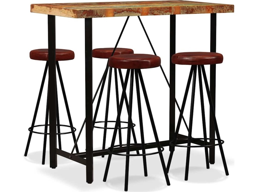 Barový set 5 kusů masivní recyklované dřevo a pravá kůže [275142]