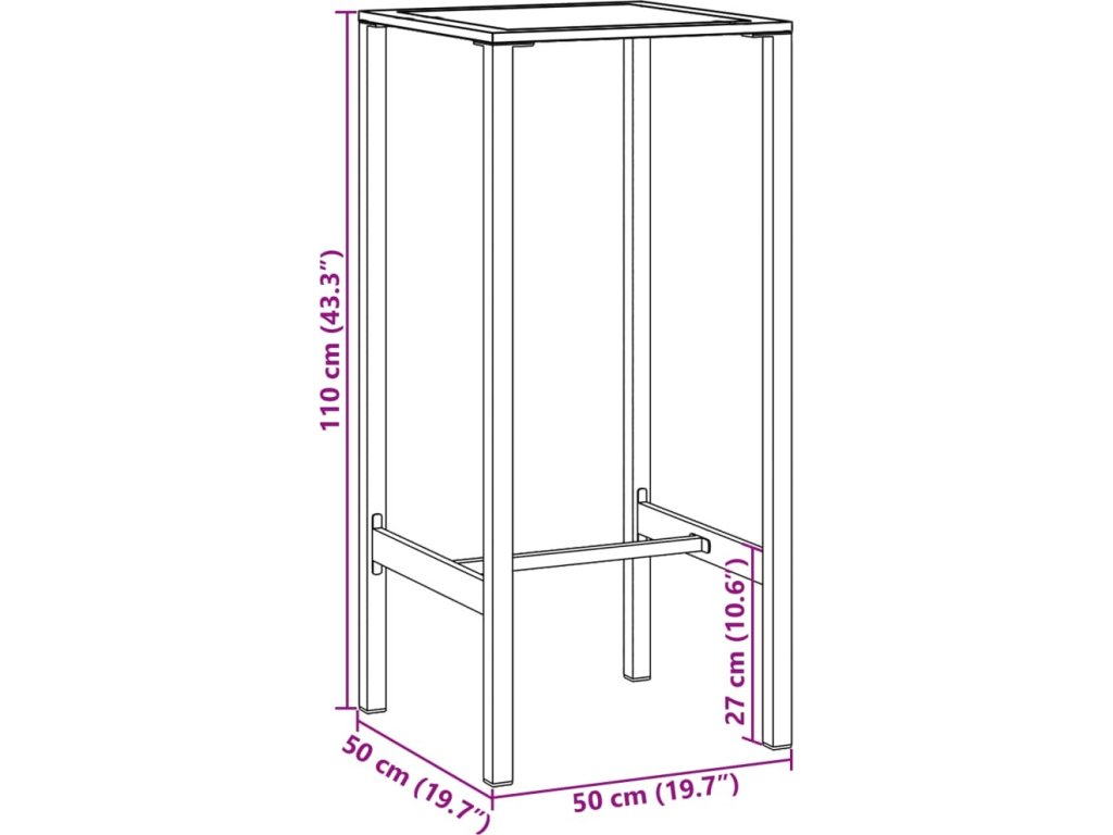 - Práškově lakovaná ocel: Tento barový stůl je vyroben z práškově lakované oceli, což je mimořádně tvrdý a pevný materiál. Zajišťuje pevnost a stabilitu. Práškový nástřik na povrchu oceli vytváří ochrannou vrstvu proti rzi, korozi a opotřebení.