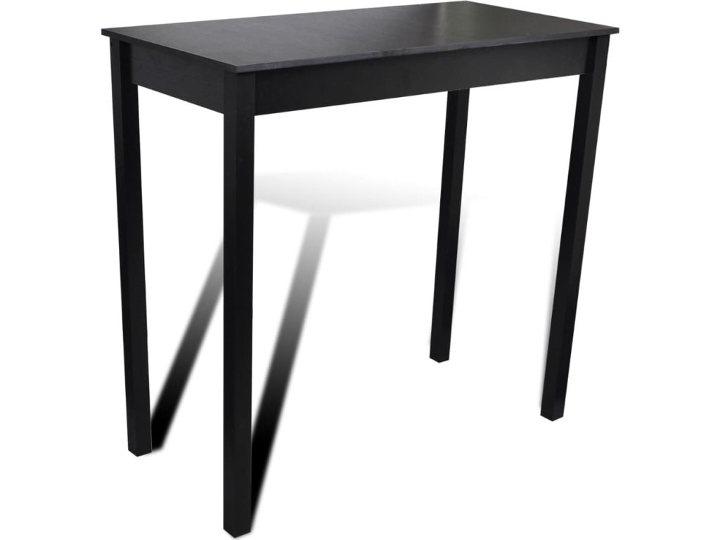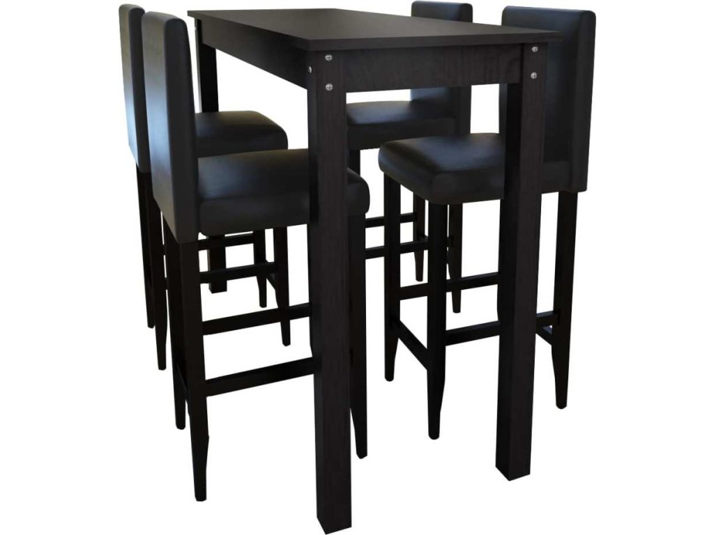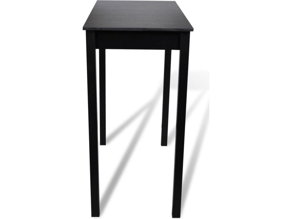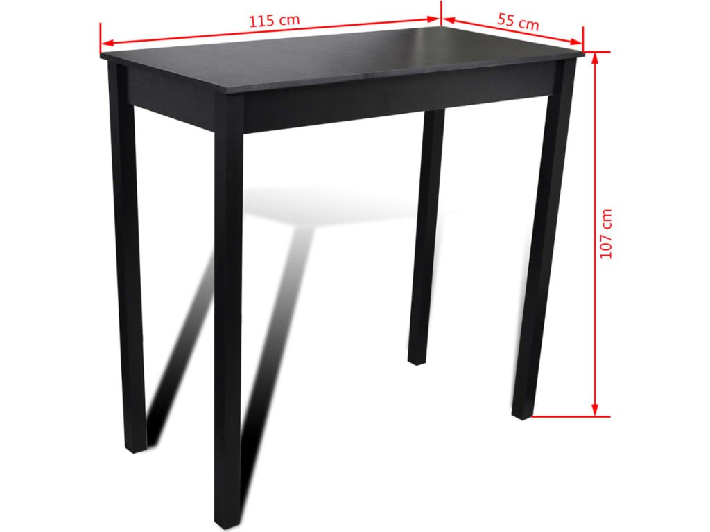 Stůl:Velikost: 115 x 55 x 107 cmTloušťka desky stolu: 15 mmNohy stolu: 4,5 x 4,5 cmBarva: černáMateriál: Stolní deska – MDF, nohy stolu – boroviceBarová židle:Barva, sedák a rám: ČernáRozměry: 41 x 45 x 108 cm (D x Š x V)Výška sedáku: 75 cmVýška opěradla: cca. 35 cmMateriál: Nohy stoličky - dřevoPočet: 4