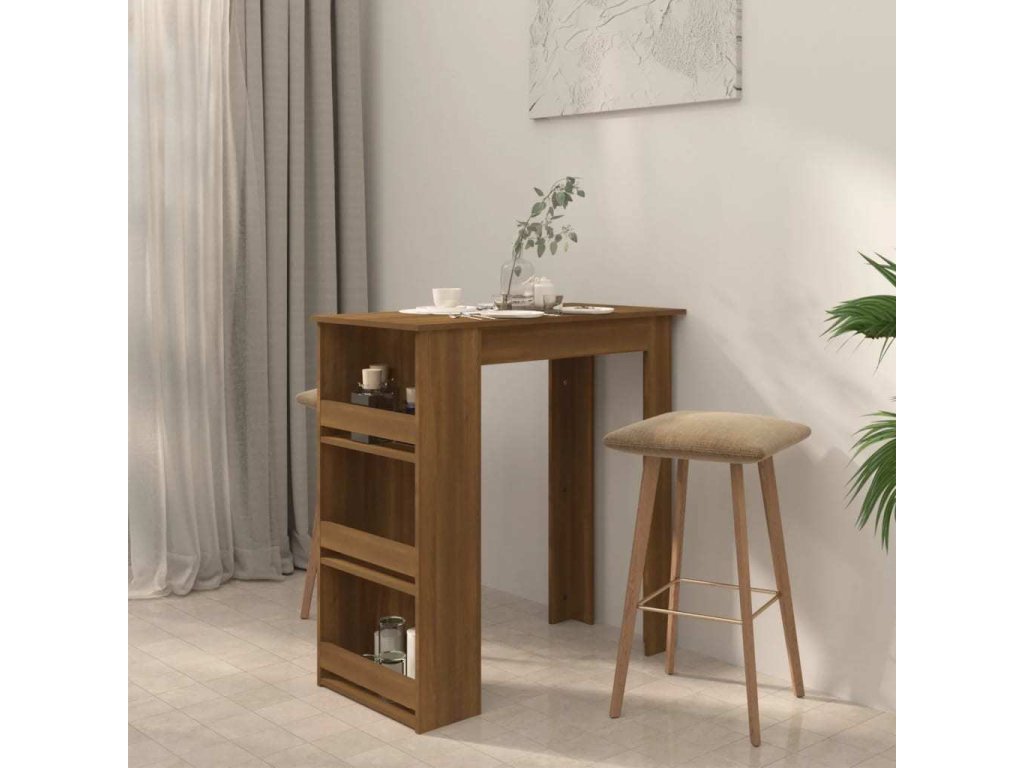 Barový stůl je vybavený 3 úložnými poličkami a poskytuje dostatek prostoru pro uložení lahví vína nebo jiných předmětů. Jeho konstrukce je odolná, stabilní a snadno se čistí.