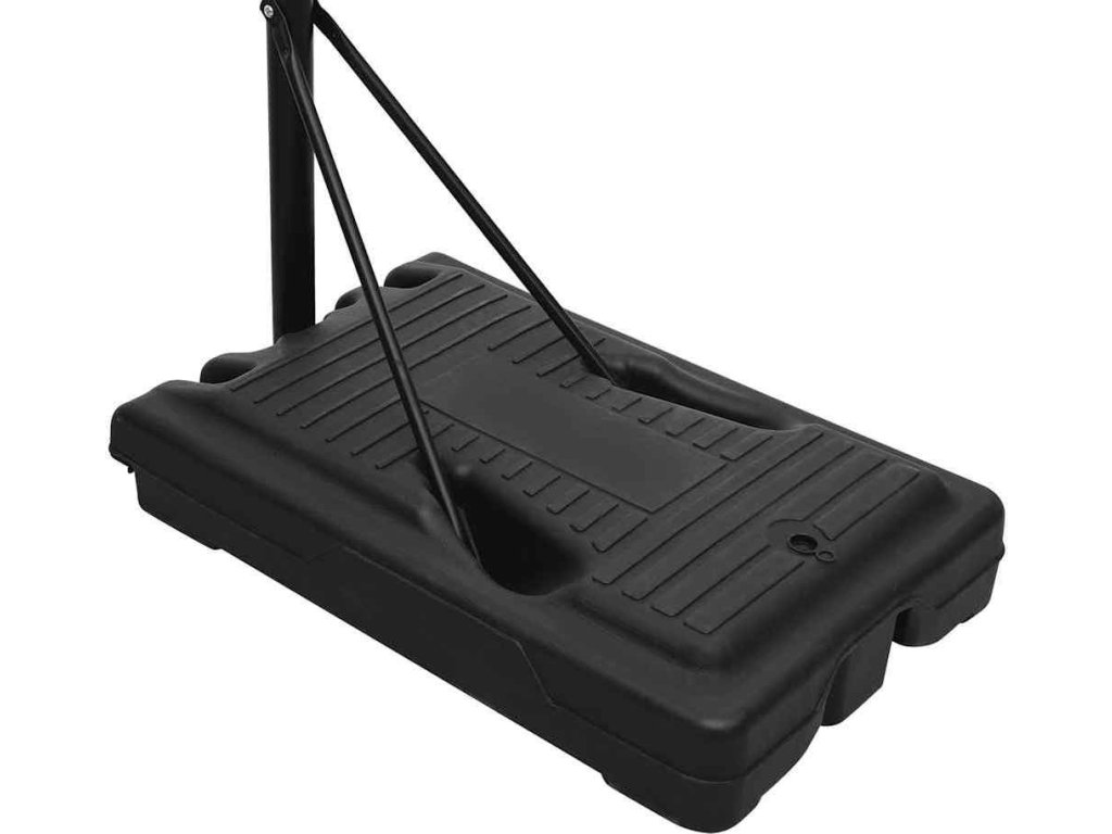 - Stabilní základna: Přenosný basketbalový stojan má trojúhelníkový stabilní design. Základnu lze naplnit vodou nebo pískem, což zvyšuje stabilitu basketbalového sloupku.