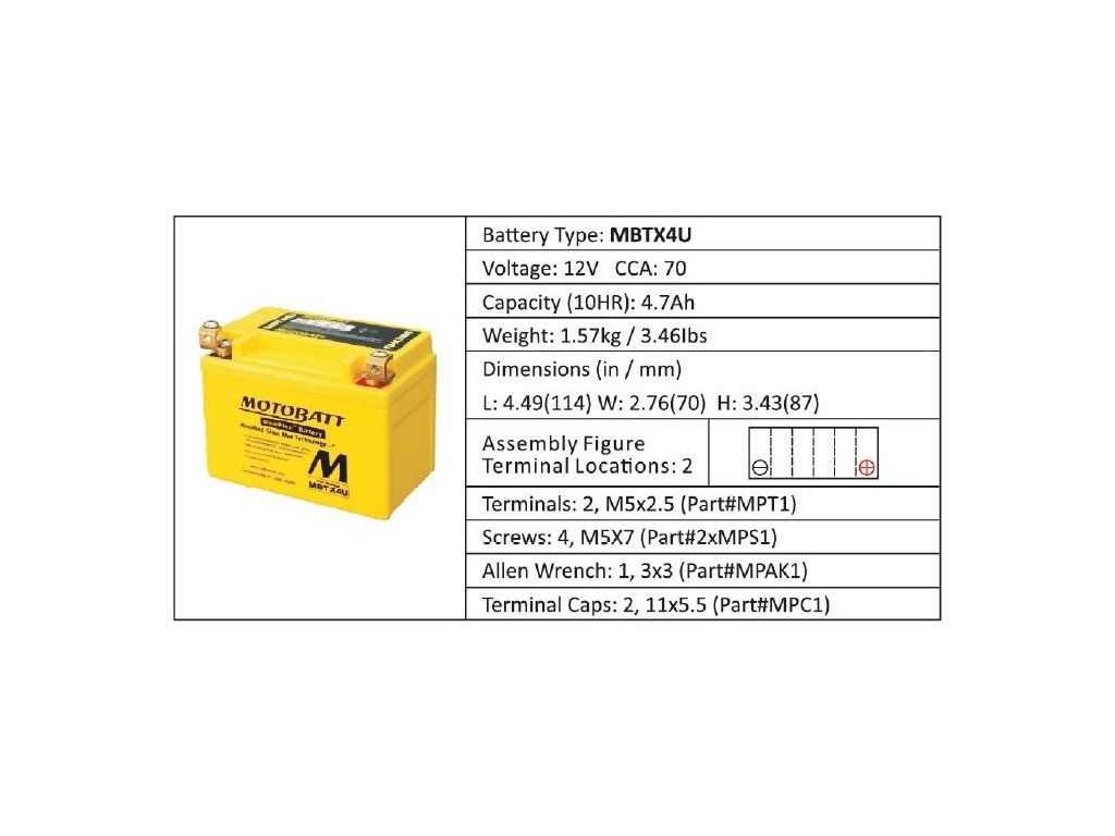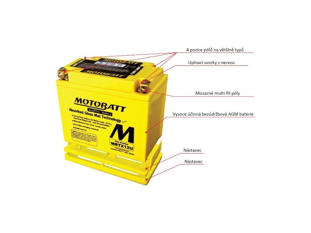 Motobaterie Motobatt MBTX4U 4,7 Ah je náhrada baterií YTX4L-BS,