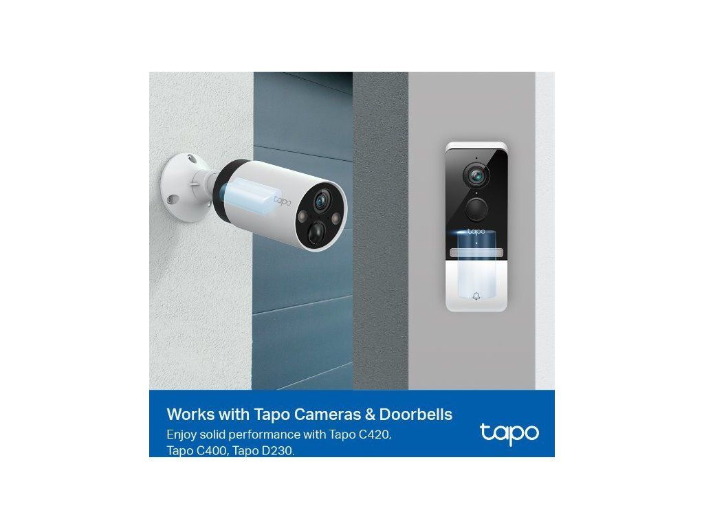 - Kompatibilita: kamery a videozvonky Tapo – Tapo C420, Tapo C400, Tapo D230