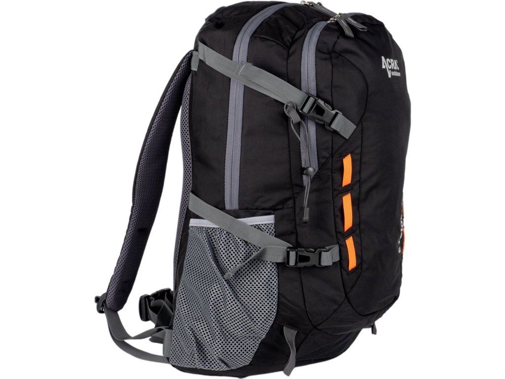 V batohu najdete 2 hlavní komory. Dostanete se k nim po rozepnutí horních oboustranných zipů. V obou se nachází kapsy s pružinkami ve vrchní části. Díky nim získáte větší přehled o všech uschovaných předmětech. Do 2 síťovaných kapes na stranách batohu Acra umístíte láhev na pití, sušenku na doplnění energie i jiné věci. Máte je vždy po ruce, aniž byste museli cokoliv rozepínat. Otvor pro trubičku v pravé horní části vám navíc umožní umístit lahev nebo pitný vak přímo do batohu. Napijete se tedy i při chůzi.