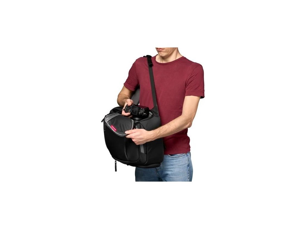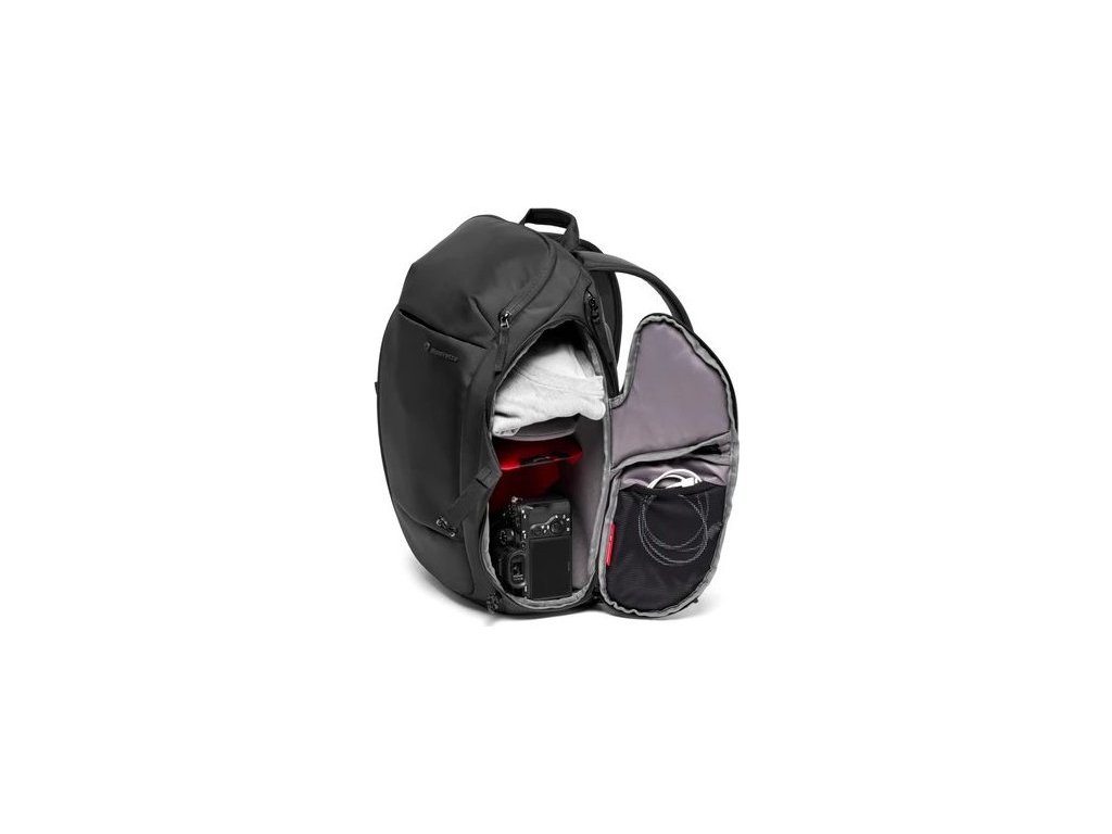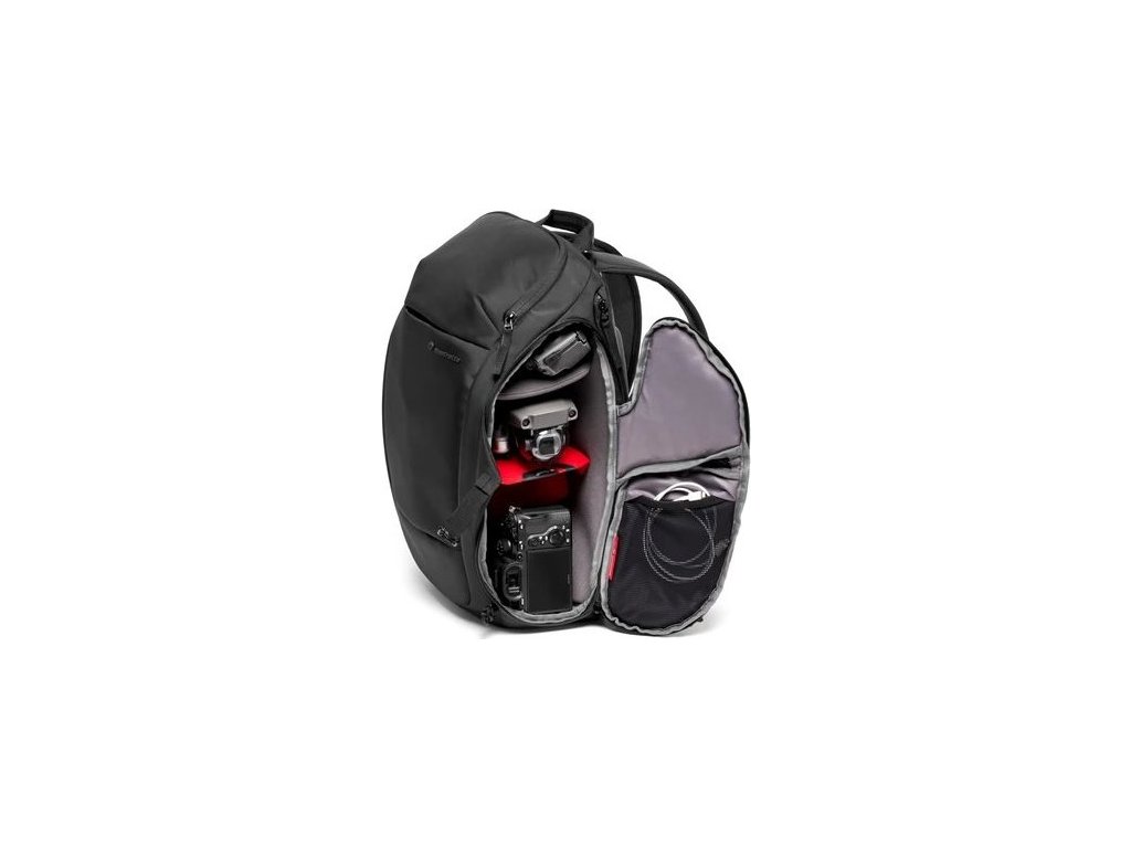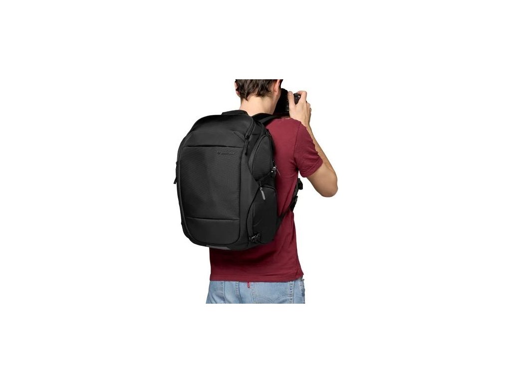Manfrotto Advanced3 Travel Backpack M je kvalitní tříkomorový fotobatoh v černém provedení s vestavěnou pláštěnkou, který je určený k pohodlnému a bezpečnému přenášení profesionálních DSLR / CSC fotoaparátů. Vnitřní prostor nabízí dostatek místa pro přístroj s objektivem, další 3 až 4 objektivy, 15" notebook, 10" tablet a spoustu drobného příslušenství nebo osobní věci.