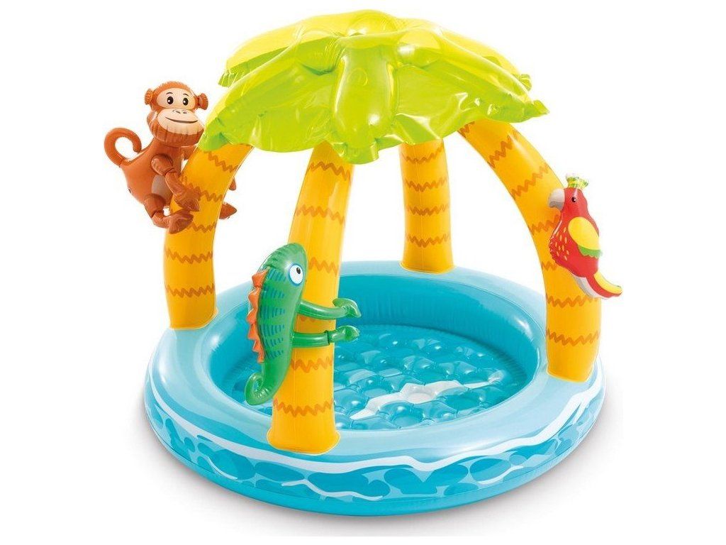 Zabavte své děti během horkých slunečních dní. Nafukovací bazén Intex s ochrannou stříškou v podobě palmových listů vašeho potomka rozveselí. Voda v bazénku ho osvěží i během parného léta, zatímco stříška ho chrání před sluncem. Užijte si společné chvíle a vytvořte si vzpomínky, které už vám nikdo nevezme.