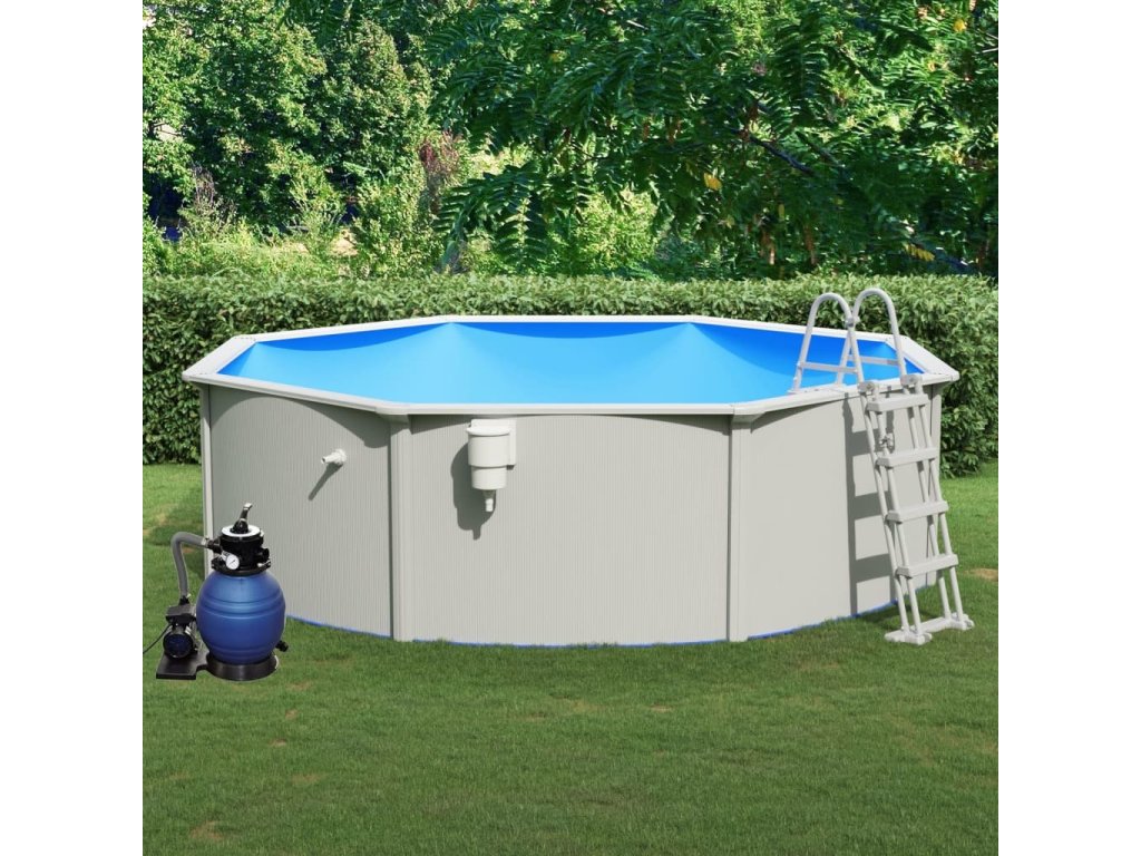 Bazén má ocelové stěny a je obložen PVC materiály, které jsou odolné proti zimě a bazénu zajišťují mimořádnou pevnost a trvanlivost. Nadzemní bazén postavíte snadno a rychle. Přiložený skimmer se postará o prvotřídní čištění, přičemž nečistoty z hladiny posbírá účinněji a lépe. S pomocí čtyřstupňového žebříku se pohodlně a bezpečně dostanete do bazénu i z něj. Pískový filtr dokáže přefiltrovat 11 000 l za hodinu a je vybaven kvalitní, korozivzdornou filtrační nádrží, která je odolná vůči kyselému vlivu chlorované bazénové vody. Má vícecestný ventil pro snadné ovládání a dobře čitelný manometr. Konstrukce horní přírubové svorky umožňuje otáčení o 360 stupňů pro snadnou instalaci. Pro bezpečnou montáž obsahuje tato sada fixovatelnou základnu. Je kompatibilní s většinou nadzemních bazénů s 2,5cm otvorem.